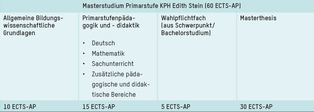 Der Abschluss des Masterstudiums Primarstufe (60 ECTS-AP) ist in 2 Semestern möglich (Vollzeitstudium bzw. berufsbegleitend).