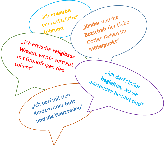 Um in Volksschulen Religion unterrichten zu können, wählen Sie im Rahmen des Bachelorstudiums Primarstufe den Schwerpunkt Religionspädagogik. Dieser umfasst 30 ECTS der 180 ECTS-Punkte des Bachelorstudiums Primarstufe und 30 ECTS der 120 ECTS-Punkte im Master. Zusätzlich zur Ausübung des Berufs eines Primarstufenlehrers bzw. einer Primarstufenlehrerin (= Volksschullehrerin bzw. Volksschullehrer) befähigt dieses Studium somit zur Erteilung des Katholischen Religionsunterrichts von der 1. bis zur 4. Schulstufe.