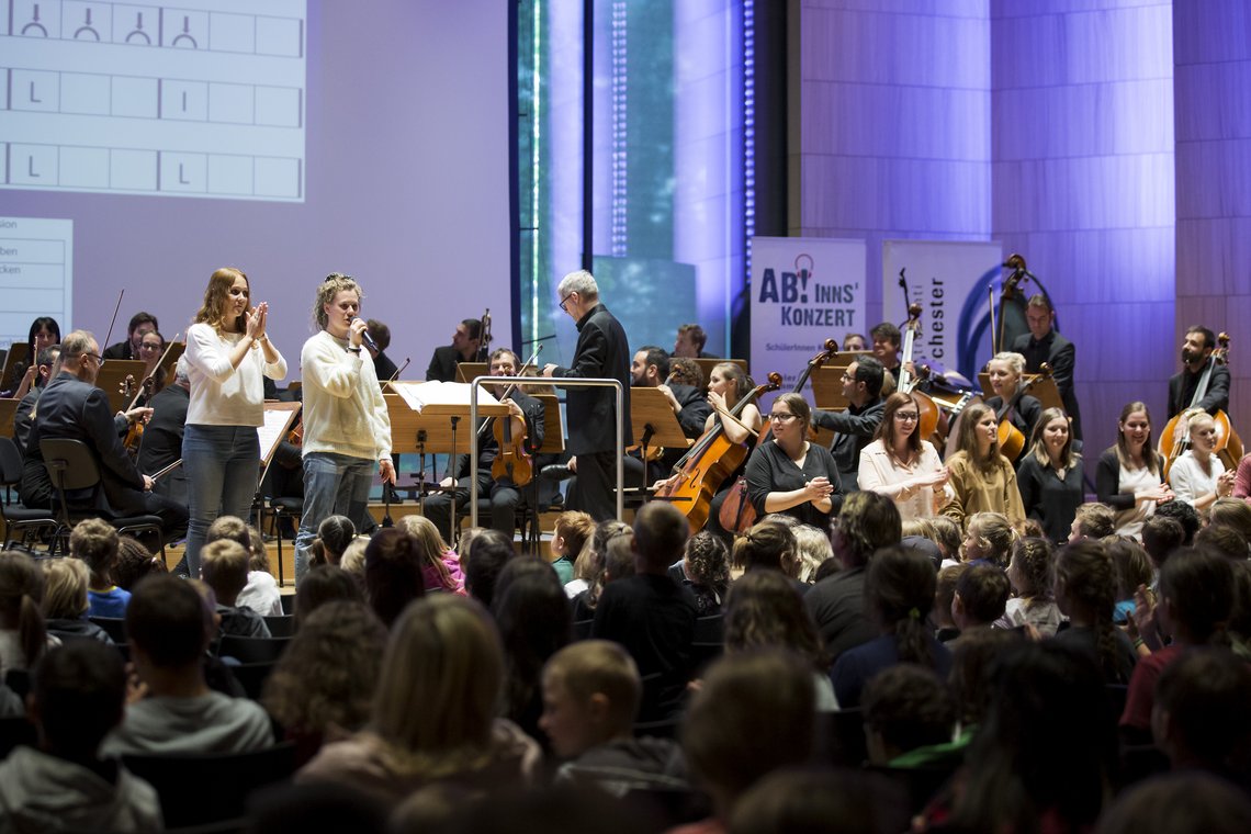 Im Rahmen der Lehrveranstaltung „Musikalisches Handeln“ erhielten wir die Möglichkeit, uns beim Konzert des Kammerorchesters "InnStrumenti" zu beteiligen und bei der Aufführung dabei zu sein. Unsere Aufgabe war dabei, die Jupiter Sinfonie und grundlegende Aspekte eines Orchesters aufzuarbeiten und ein kindgerechtes Material für die Vorbereitung des Konzertbesuchs zu erstellen. Dieses enthielt verschiedene Informationen, Spiele, Rätsel und einen Spiel-Mit-Satz zu einem Teil der Sinfonie. Beim Konzert durften wir diesen dann gemeinsam mit den Kindern durchführen. Wir konnten erleben, wie ein Konzertbesuch kindgerecht gestaltet werden kann und welche Ansätze sich dazu eignen, die Kinder aktiv ins Konzert miteinzubeziehen.