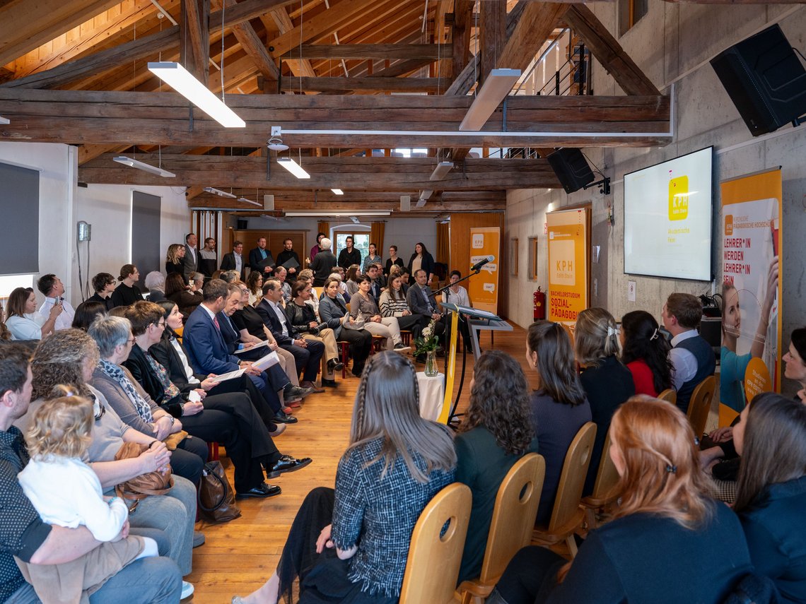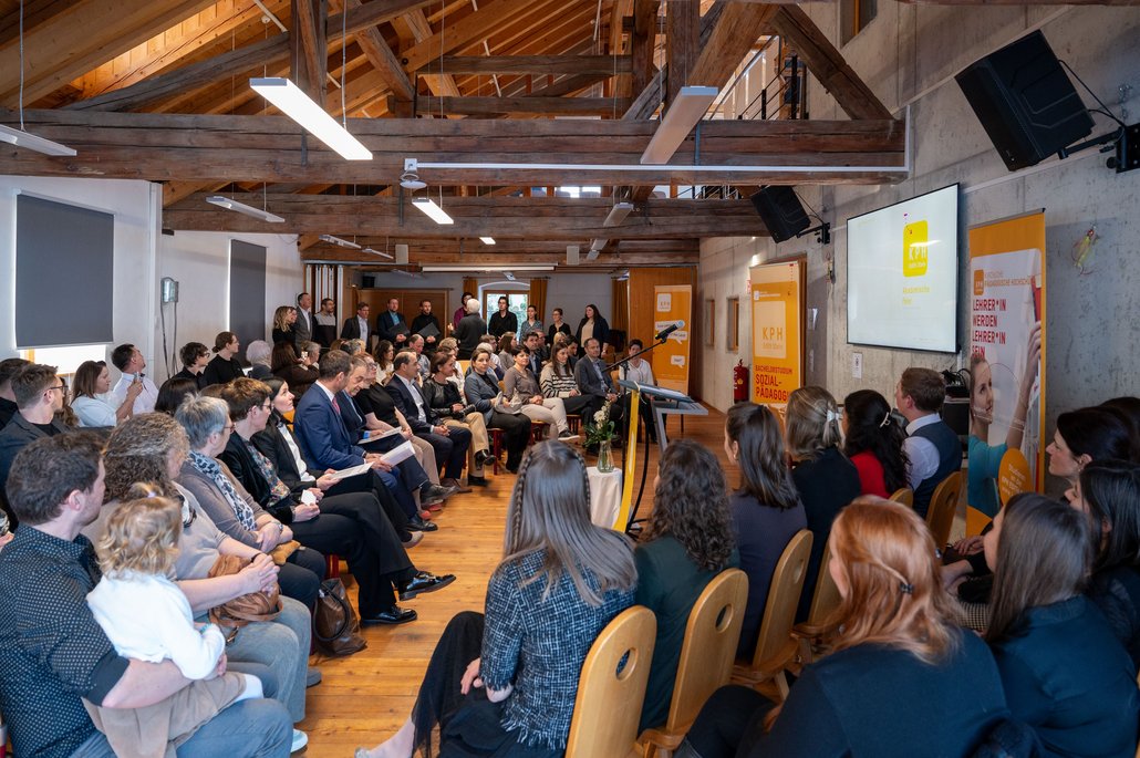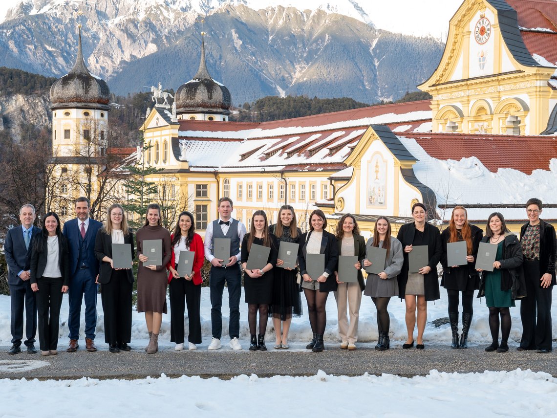 Am 30. Jänner 2026 fand am Standort Stams eine Akademische Feier statt. In feierlichem Rahmen wurden insgesamt zwölf Absolvent:innen geehrt: Vier Sozialpädagog:innen sowie acht Lehrpersonen, die erfolgreich den Master of Education abgeschlossen haben. Begleitet von Klängen des KPH-Chores bot die Speckbacher-Villa einen passenden Raum für Würdigung, Dank und persönliche Begegnungen. Im Anschluss an den offiziellen Festakt klang der Nachmittag bei einem gemütlichen Beisammensein im Rahmen einer Agape aus. Die KPH Edith Stein gratuliert allen Absolvent:innen herzlich und wünscht ihnen alles Gute sowie viel Erfolg und Erfüllung auf ihrem weiteren Lebens- und Berufsweg.