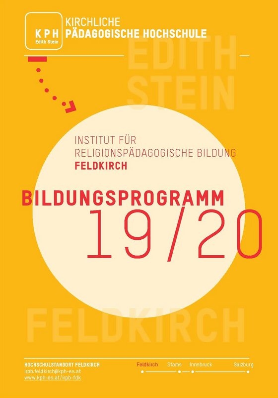 Wir freuen uns, Ihnen unsere neuen Bildungsprogramme 2019/2020 - <link https: www.kph-es.at fileadmin user_upload irpb_feldkirch dokumente bildungsprogramm_2019_2020.pdf external-link-new-window external link in new>Bildungsprogramm und <link https: www.kph-es.at fileadmin user_upload irpb_feldkirch dokumente bildungsprogramm_elementar_2019_2020.pdf external-link-new-window external link in new>Bildungsprogramm Elementarpädagogik - präsentieren zu können und Sie so dabei begleiten zu dürfen, immer wieder neu für sich selbst und für die von Ihnen begleiteten Kinder und Jugendlichen jenen Reichtum zu erschließen, der immer schon da ist. Petra Steinmair-Pösel