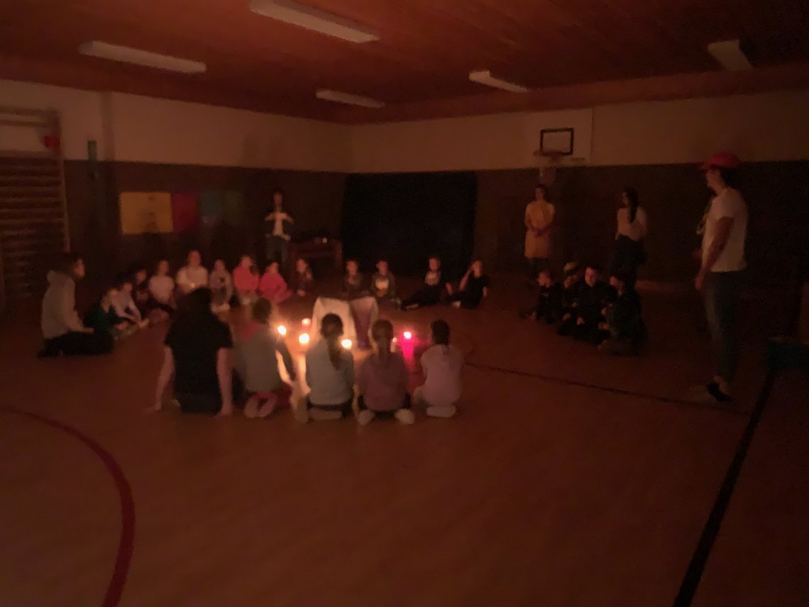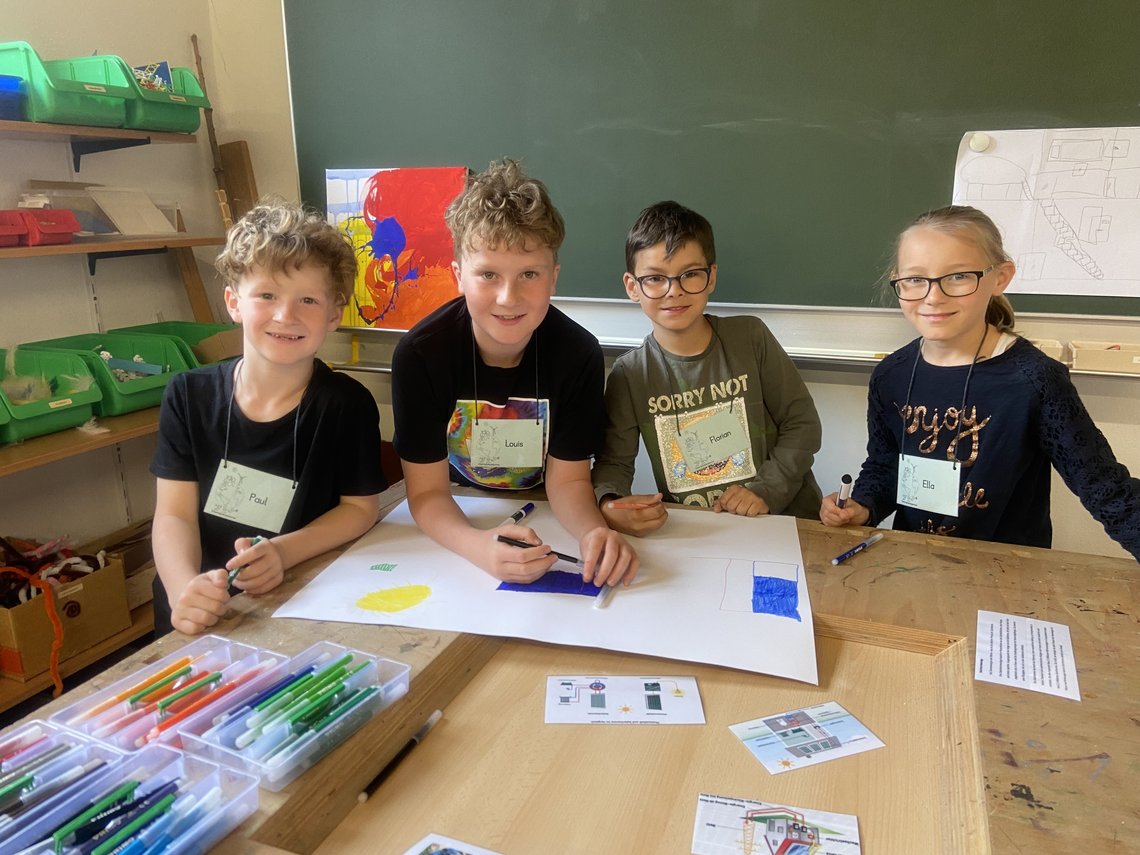 Die Schülerinnen und Schüler von Bewegung und Energie gestalteten ein Theaterstück, in dem ein Morgen einer Familie mit Strom einem Morgen einer Familie ohne Strom gegenübergestellt wurde.