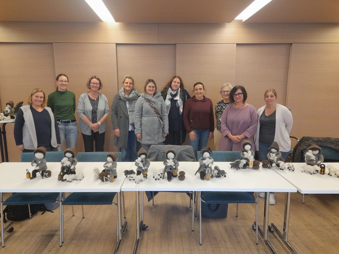Bei dieser Fortbildung haben Elementarpädagoginnen die heilige Familie aus Filz gestaltet. Ein stiller Impuls für die religiöse Bildung der Kleinsten.