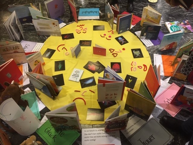 Dienstagabend, 23. Oktober 2018: 27 Teilnehmerinnen aus Kindergärten und Schulen und 35 Bilderbücher, die die verschiedensten Gefühle und Emotionen von Kindern, manchmal mit berührenden Bildern, manchmal mit Witz und Charme, manchmal mit kraftvollen oder leisen oder zarten Worten ernst nehmen und uns erwachsenen Menschen einen Einblick in die Gefühlswelt von Kindern (und vielleicht auch von uns selber) geben.