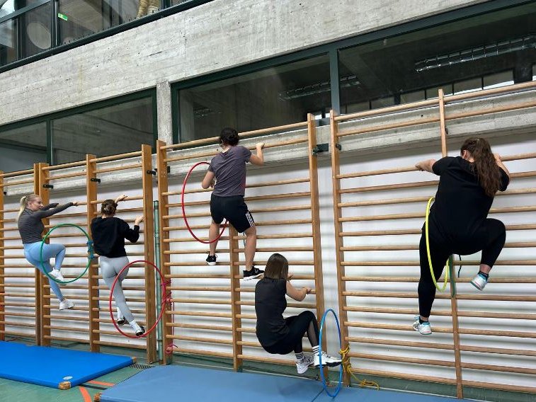 Im Rahmen der praxisorientierten Lehrveranstaltungen „Bewegen an und mit Geräten“ setzten sich die Studierenden des ersten Semesters intensiv damit auseinander, wie kleine und große Turngeräte im Unterrichtsgegenstand Bewegung und Sport differenziert, inklusiv und handlungsorientiert eingesetzt werden können. Dabei wurden methodische Übungsreihen praktisch erprobt, um Kindern einen sicheren und motivierenden Zugang zu Geräten zu ermöglichen. Zudem stand auch das Verbessern des eigenen Könnens im Mittelpunkt. So konnten die angehenden Lehrpersonen nicht nur ihr fachliches Wissen erweitern, sondern auch praktische Fertigkeiten stärken – eine wertvolle Grundlage, um den Kindern Spaß und Freude an der Bewegung vermitteln zu können.