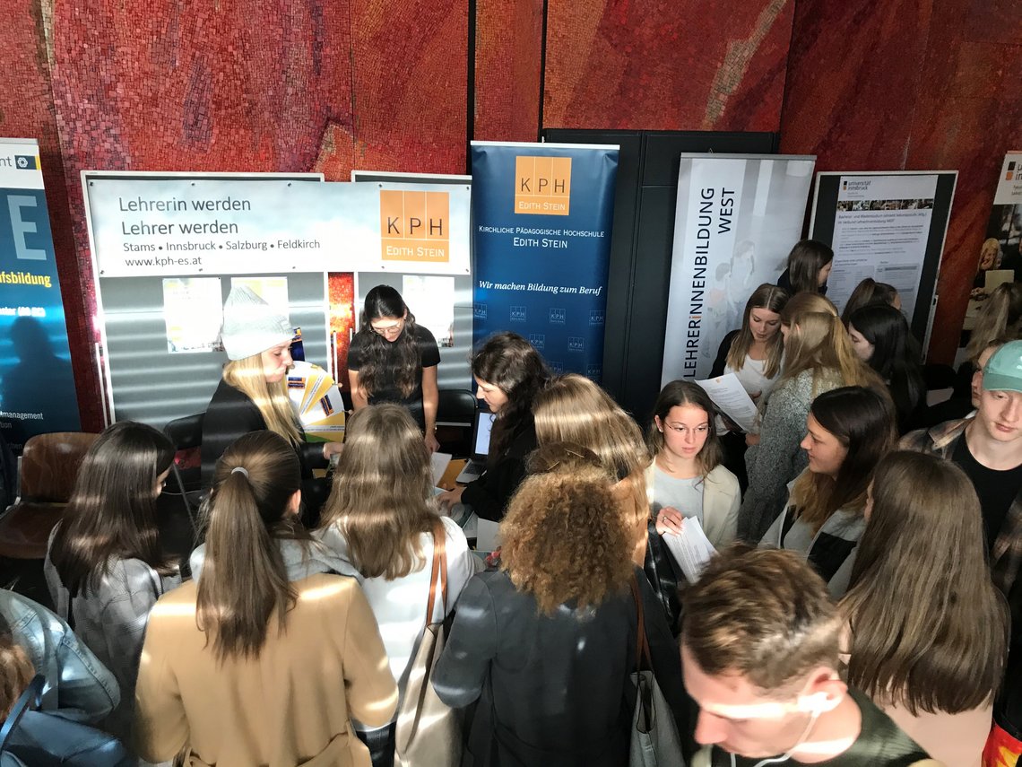 Stark frequentiert wurde der KPH Stand am Tiroler Hochschultag. Zahlreiche Interessent_innen informierten sich über die Ausbildung zur Lehrerin/zum Lehrer am Hochschulstandort Stams.