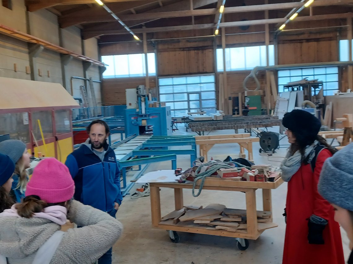 Bei Holz Marberger erfuhren wir viel über die verschiedenen Holzarten, deren Eigenschaften und die nachhaltige Beschaffung. Geschäftsführer Mag. Marberger erklärte uns die Bedeutung von Qualität und Herkunft des Holzes und wie diese Faktoren die Verarbeitung und Haltbarkeit beeinflussen. In praktischen Vorführungen konnten wir beobachten, wie Holz zugeschnitten und bearbeitet wird, um es optimal für verschiedene Anwendungen vorzubereiten.
