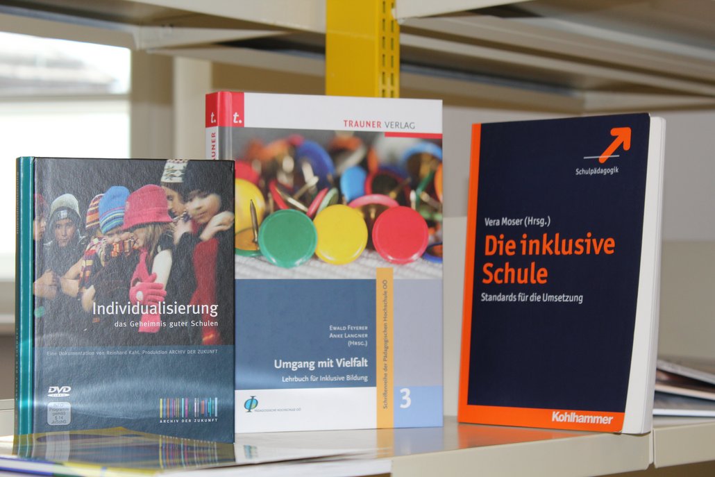 In der Bibliothek ist nun ein Info-Bereich für alle an der Thematik Interessierte eingerichtet, an dem in aktuelle Unterlagen bzw. Bücher zum Thema Einblick genommen werden kann. Lehrende und Studierende sind fortan eingeladen, sich am Ausbau der Handbibliothek zu beteiligen sowie an der Positionierung der Inklusiven Pädagogik an der KPH – Edith Stein weiter zu arbeiten.