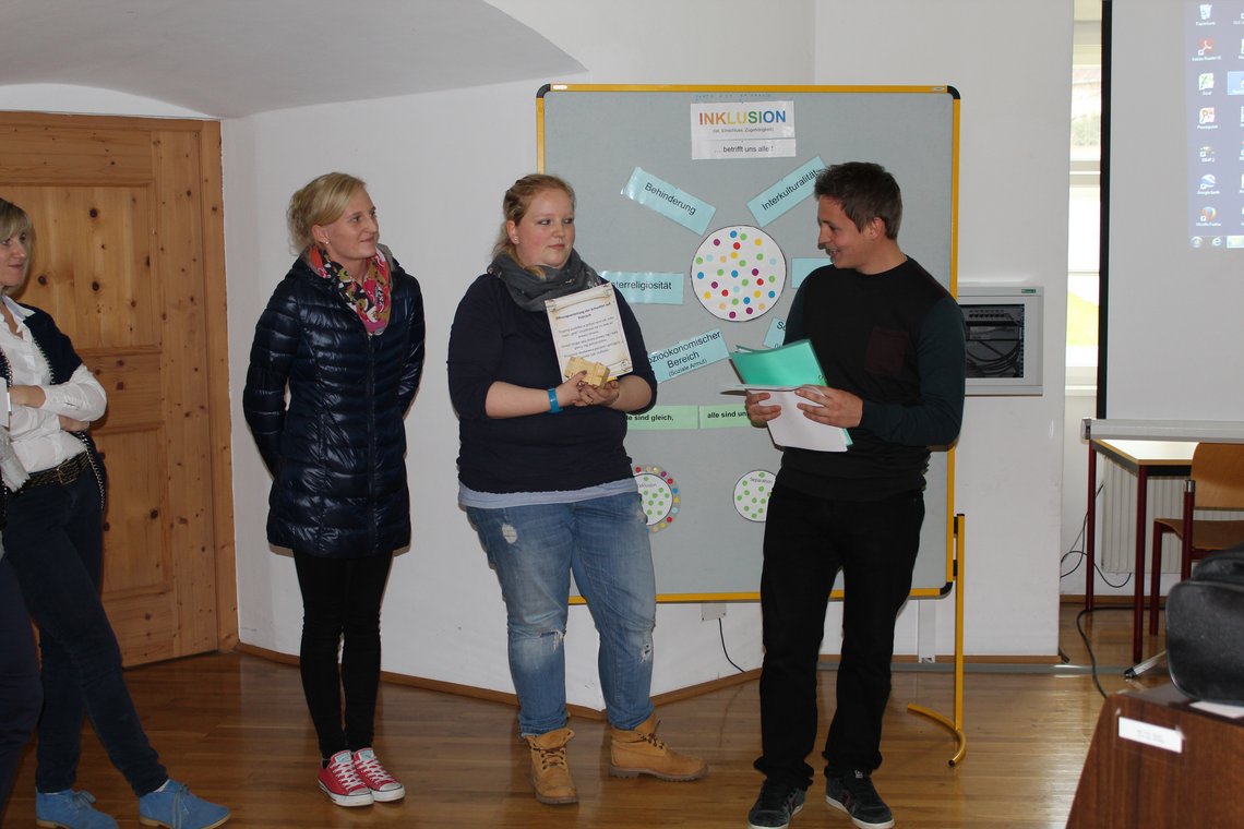 Vor diesem Hintergrund beschäftigten sich Studierende des 3. Semesters des Studiengangs Religionspädagogik im Rahmen ihrer Lehrveranstaltung „Inklusive Pädagogik“ projektartig mit spezifischen Themen aus unterschiedlichen Diversitätsbereichen. In der Bibliothek des Hochschulstandortes Stams wurde das Erarbeitete im Beisein der Institutsleiter/innen sowie der Mitglieder der Steuergruppe Inklusion präsentiert. Das war gleichzeitig der Startschuss zur Sichtbarmachung eines der Schwerpunkte an der KPH – Edith Stein.