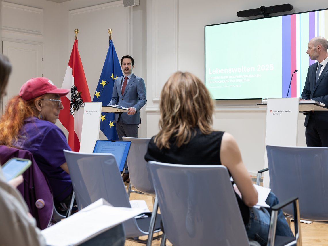 Im Rahmen eines Medientermins präsentierten heute Bildungsminister Christoph Wiederkehr,Martina Ott, Hochschulprofessorin am Institut für Bildungssoziologiean der PH Vorarlberg, sowie Nikolaus Janovsky, Rektor der KPH Edith Stein und stellvertretender Vorsitzender der RÖPH Ergebnisse einer großen Jugendstudie.