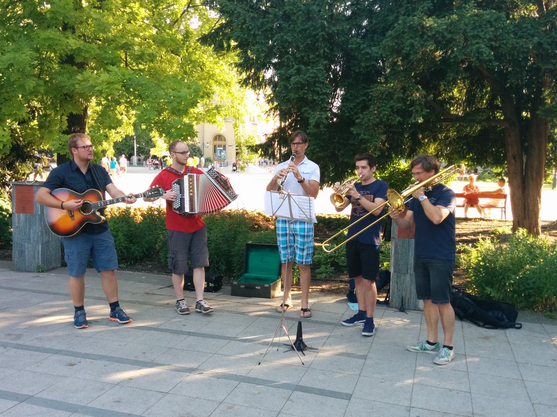 Einen musikalischen Gruß aus den Alpen gestaltete darüber hinaus das Folk Ensemble der KPH – Edith Stein unter der Leitung von Andreas Sappl auf dem Hauptplatz von Kecskemét.