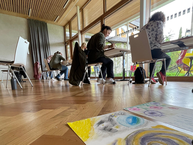 Elementarpädagoginnen tauchten einen Nachmittag lang in einen kreativen Gestaltungsprozess ein. Begleitet wurden sie dabei von der Mal- und Gestaltungspädagogin Katharina Fankhauser. Vielfältige Materialien kamen zum Einsatz und kreative Methoden wurden erprobt, um Impulse für den pädagogischen Alltag zu gewinnen. Jede Teilnehmerin erlebte die Wirkung dieses Prozesses auf ganz individuelle Weise. Farben und Techniken eröffneten neue Ausdrucksmöglichkeiten, inspirierten zur Reflexion und luden dazu ein, den Alltag aus ungewohnten Blickwinkeln zu betrachten.
