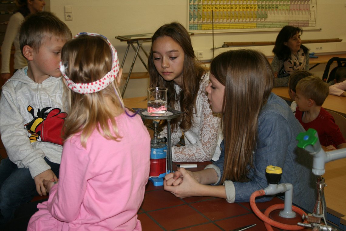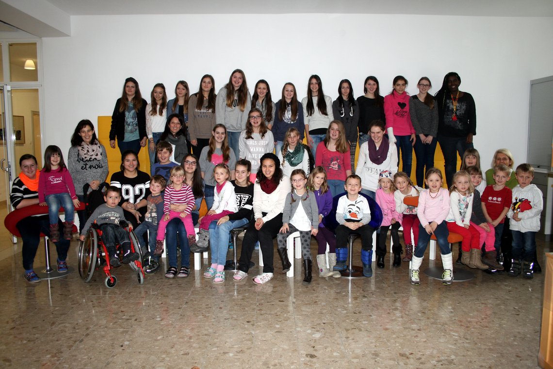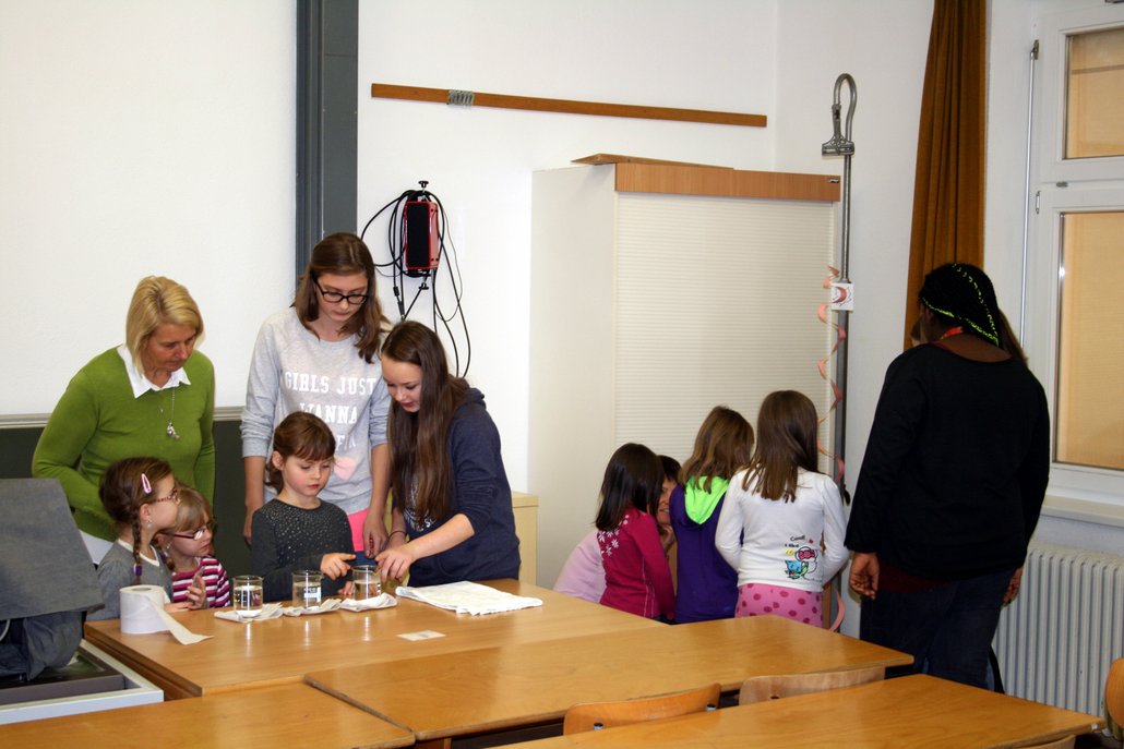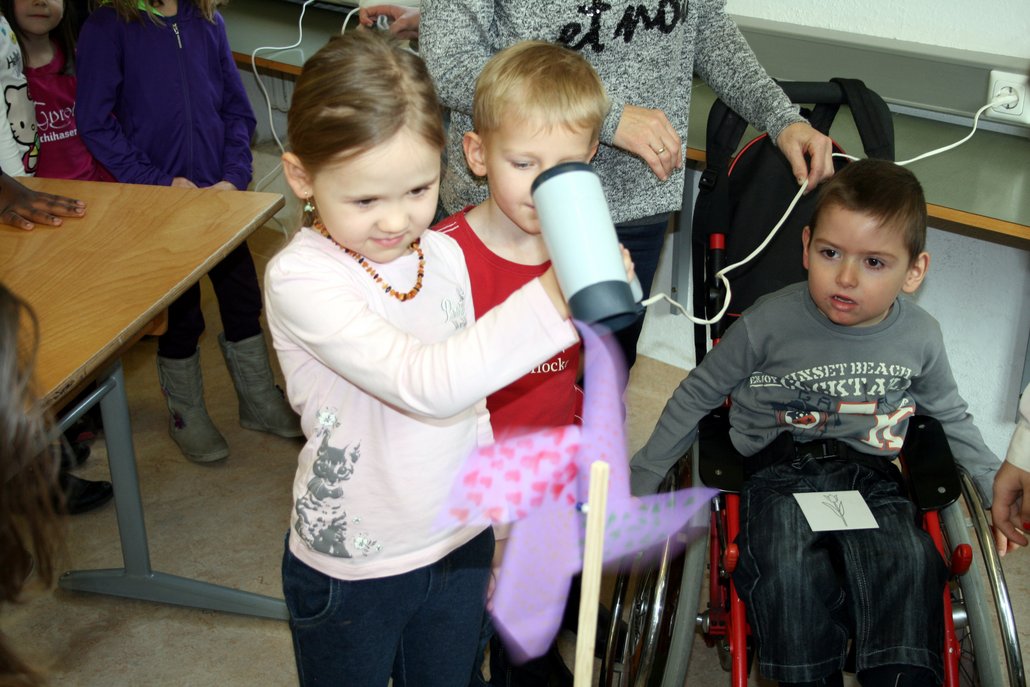 Eine Gruppe von Kindergartenkinder aus dem Kindergarten Tösens betätigte sich zusammen mit Schülerinnen der 4. Klasse als kleine Wetterforscher.