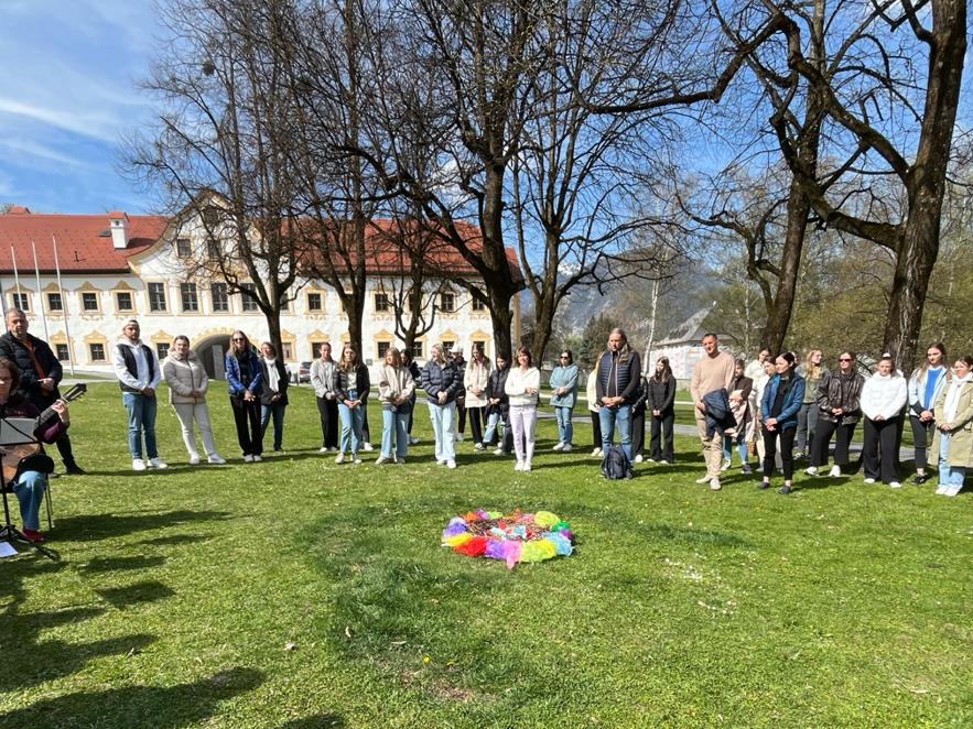 Unter dem Titel „Pray4Peace“ gestalteten Studierende des Schwerpunkts Religionspädagogik ein meditatives, vorösterliches Friedensgebet. Die Mitte bildete eine kunstvoll gestaltete Dornenkrone, die Platz bot für Bitten um Frieden und Versöhnung.