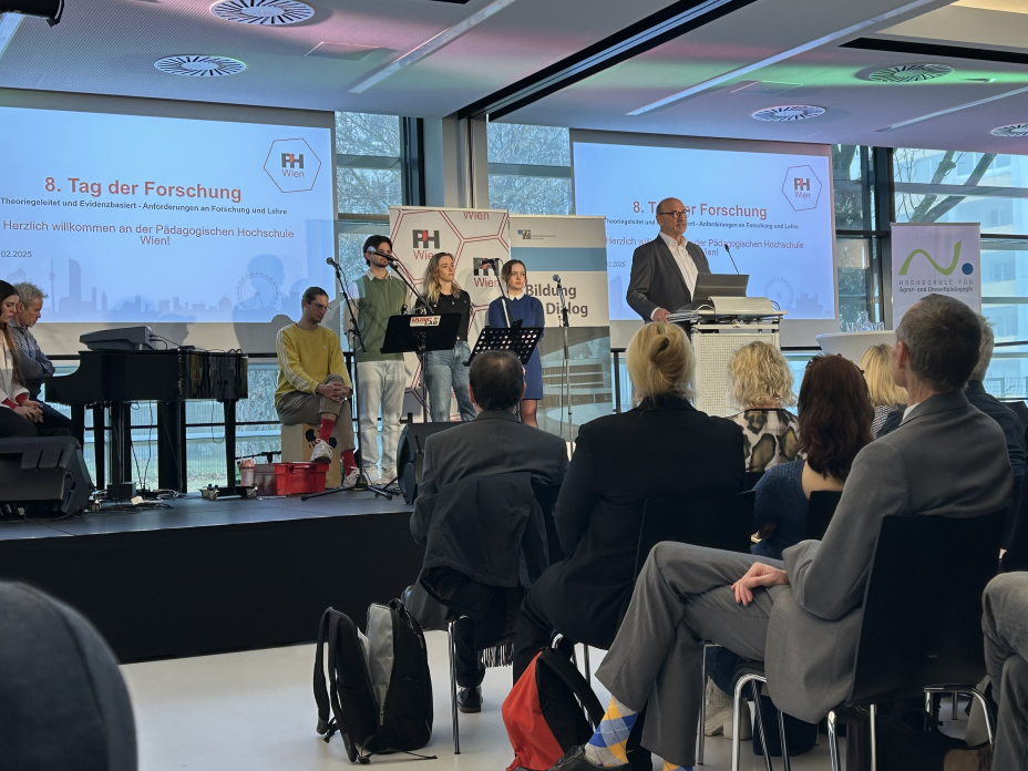 Am Tag der Forschung an der PH Wien wurden Ergebnisse der Begleitstudie zum Hochschullehrgang „Frühe sprachliche Förderung“ präsentiert. Katharina Sölder (Elementar- und Hortpädagogik) stellte die Studie vor, die sich mit der Bedeutung der Sprache als zentraler Bildungsbereich in der frühen Kindheit befasst und insbesondere auf die Professionalisierung von Elementar- und Primarpädagog:innen fokussiert. Dabei wurde deutlich, wie sich die Teilnahme am Lehrgang konkret auf die berufliche Haltung und die pädagogische Praxis der Absolvent:innen auswirkt.