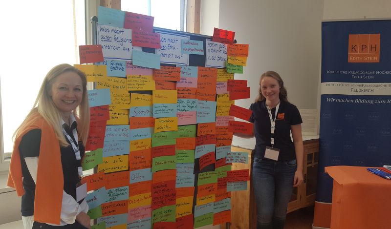 440 Jugendliche aus 20 verschiedenen Vorarlberger Schulen waren gekommen, um sich über verschiedene Berufe in der und im Umfeld der Katholischen Kirche in Talks und Workshops, bei Informationsständen und in persönlichen Begegnungen zu informieren. Mit dabei natürlich auch die KPH Edith Stein, mit zwei Studierenden aus dem Schwerpunkt Religion, die mit den Schülerinnen und Schülern zu Fragen rund um den Religionsunterricht ins Gespräch gekommen sind: Was macht einen guten Religionsunterricht aus? Und was einen guten Ethikunterricht? Soll es auch in Zukunft Religion als Unterrichtsfach in der Schule geben?