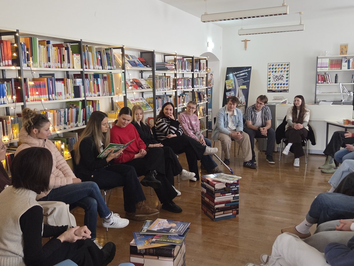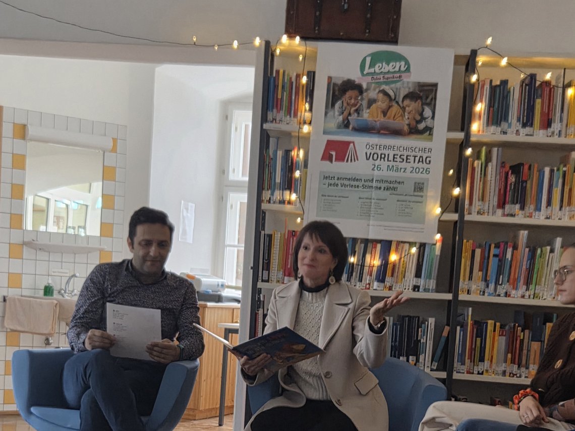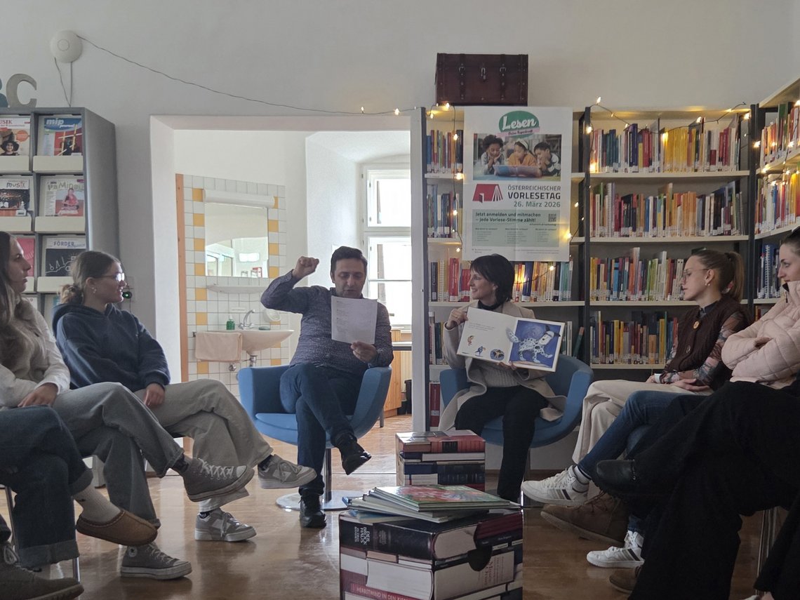 Im Rahmen des „Österreichischen Vorlesetages 2026“ wurde unsere Studienbibliothek zu einem Ort lebendiger Mehrsprachigkeit und gemeinsamer Begegnung. Studierende lasen zweisprachige Bilderbücher auf Deutsch sowie auf Kroatisch bzw. Türkisch vor und nahmen uns mit auf eine literarische Reise.