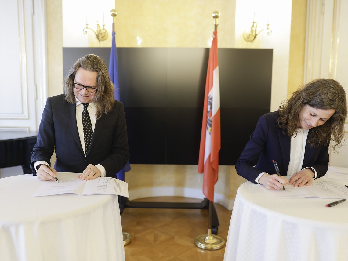 Der Audienzsaal des BMBWF am Minoritenplatz in Wien bildete am 3. März 2022 einen würdigen Rahmen für die Unterzeichnung der Ziel- und Leistungspläne der Pädagogischen Hochschulen für die Jahre 2022 bis 2024. Bildungsminister Martin Polaschek überreichte die Dekrete an die einzelnen Rektor*innen, verbunden mit den besten Wünschen für die Umsetzung der vielfältigen Aufgaben in Lehre und Forschung.