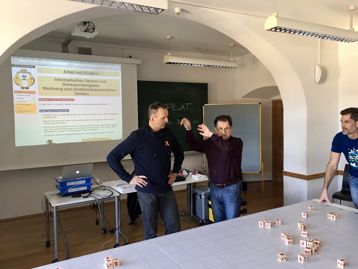 Um die Kompetenzentwicklung der Studierenden der KPH Edith Stein in diesem immer wichtiger werdenden Bereich des Lehrens und Lernens bestmöglich fördern zu können, arbeiteten sich 9 Hochschullehrerinnen und Hochschullehrer unter der fachkundigen Begleitung von Prof. Bachinger in die didaktischen Möglichkeiten des Einsatzes des mittlerweile sehr umfangreichen <link http: dlpl.at external-link-new-window external link in new>Projektmaterials ein und erhielten einen Eindruck von den vielfältigen Möglichkeiten spielerischer und lustbetonter Lernformen zur Entwicklung von strategischem Denken und Problemlösekompetenz.