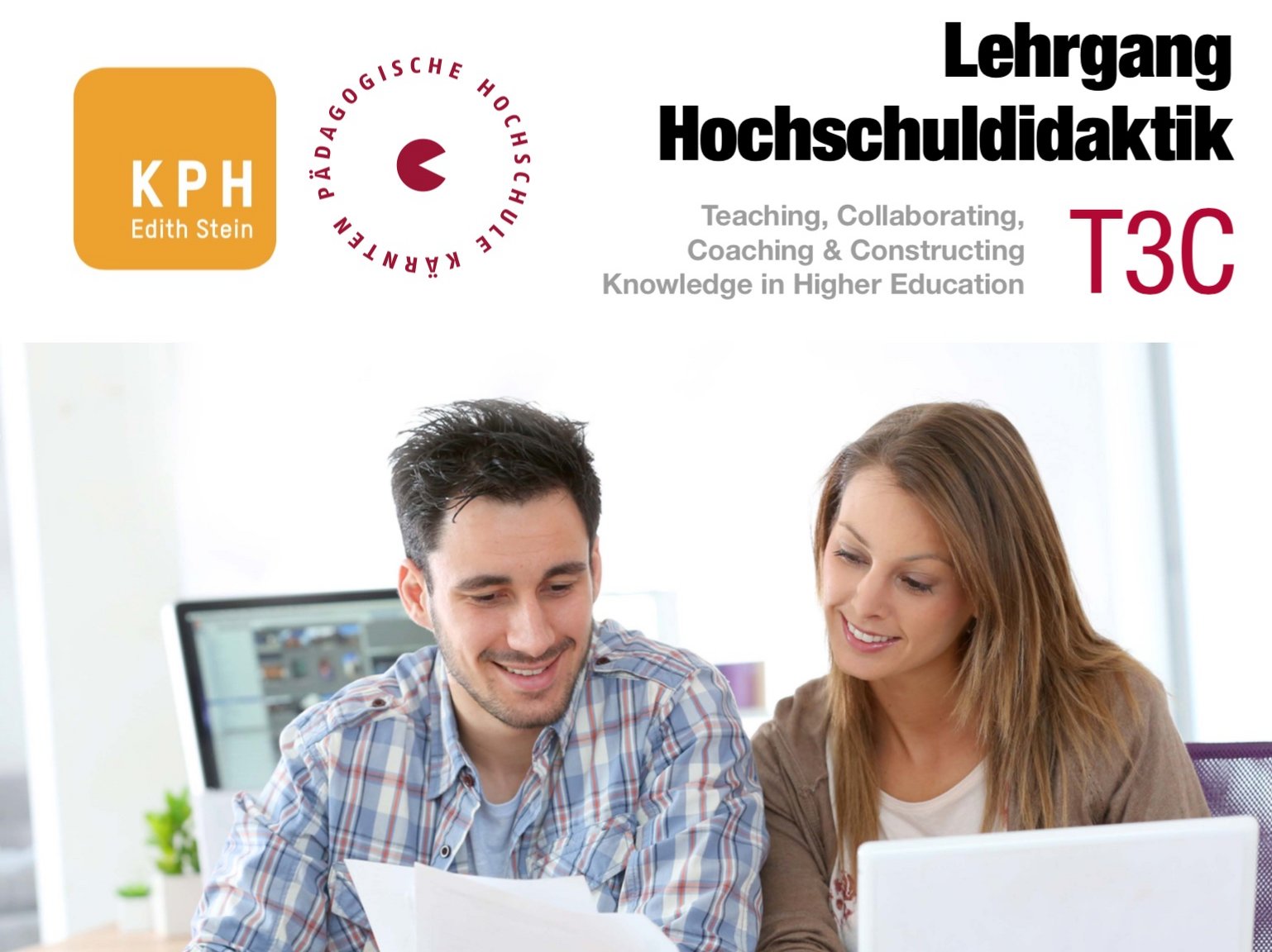 Der Lehrgang Hochschuldidaktik (T3C), der in Kooperation zwischen der PH-Kärnten und der KPH Edith Stein entwickelt wurde, ist ein 60 ECTS umfassender Blended-Learning-Lehrgang mit reduzierten Präsenzphasen und verstärkter Berücksichtigung neuer, digital gestützter Lehr- und Lernformen im Wege des Distance Learnings. Er schließt mit der Bezeichnung „Akademischer/Akademische Hochschuldidaktiker/in“ ab und entspricht den Voraussetzungen des BMBF für die Einstufung in PH2. Neben der Vermittlung von Grundkompetenzen für die Planung, Gestaltung, Durchführung und Evaluation akademischer Lehre, sollen die Absolvent/innen zum didaktisch sinnvollen Einsatz neuer Lehr-/Lernformen sowie zur Entwicklung digital- inklusiver Lehrkompetenz bei Studierenden befähigt werden. Dies beinhaltet sowohl die Befähigung zur methodisch-didaktischen Konzeption von Distance Learning Phasen (offene und betreute Lernphasen) sowie die Begleitung von Fernstudien, bzw. berufsbegleitenden Studien mit Fernstudienanteilen (eModeration, eCoaching).