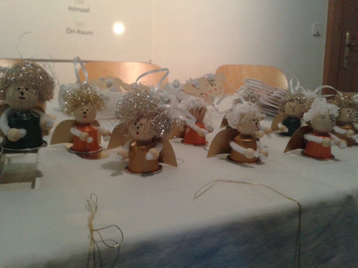 Verschiedenste Engel, Weihnachtstaschen, Schafe, Teelichter, Punsch ... Das alles wurde an einem kleinen Adventstand am Hochschulstandort Stams am Di, 17.12. als Dankeschön für eine Spende für die Aktion Sterntaler (Unterstützung einer Krankenstation in Kenia) bzw. eine von einem Brand heimgesuchte Familie in Telfs verteilt.
