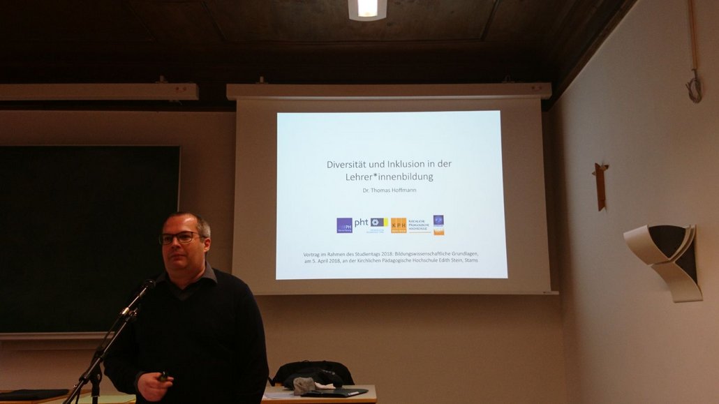 Am 5. April 2018 fand für Lehrende im Bereich der Bildungswissenschaften der Sekundarstufe ein Studientag zum Thema „Diversität und Inklusion in der LehrerInnenbildung“ statt. Prof. Dr. Thomas Hoffmann von der PH Ludwigsburg und künftiger Professor an der Universität in Innsbruck zeigte in einem spannenden Vortrag das breite Feld einer inklusiven Pädagogik auf. Darin ging er auf folgende vier Thesen ein: