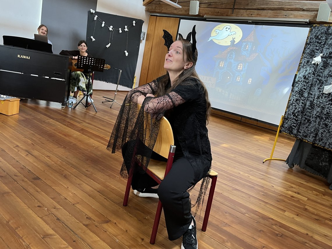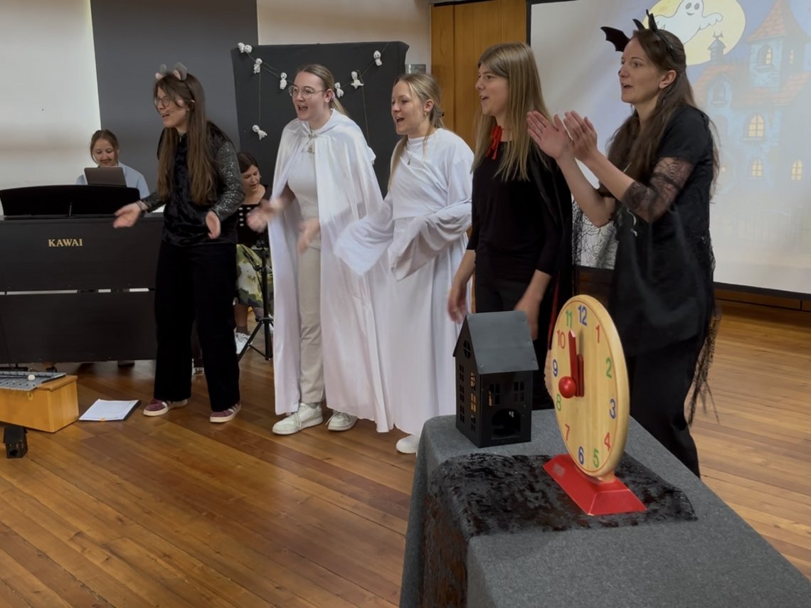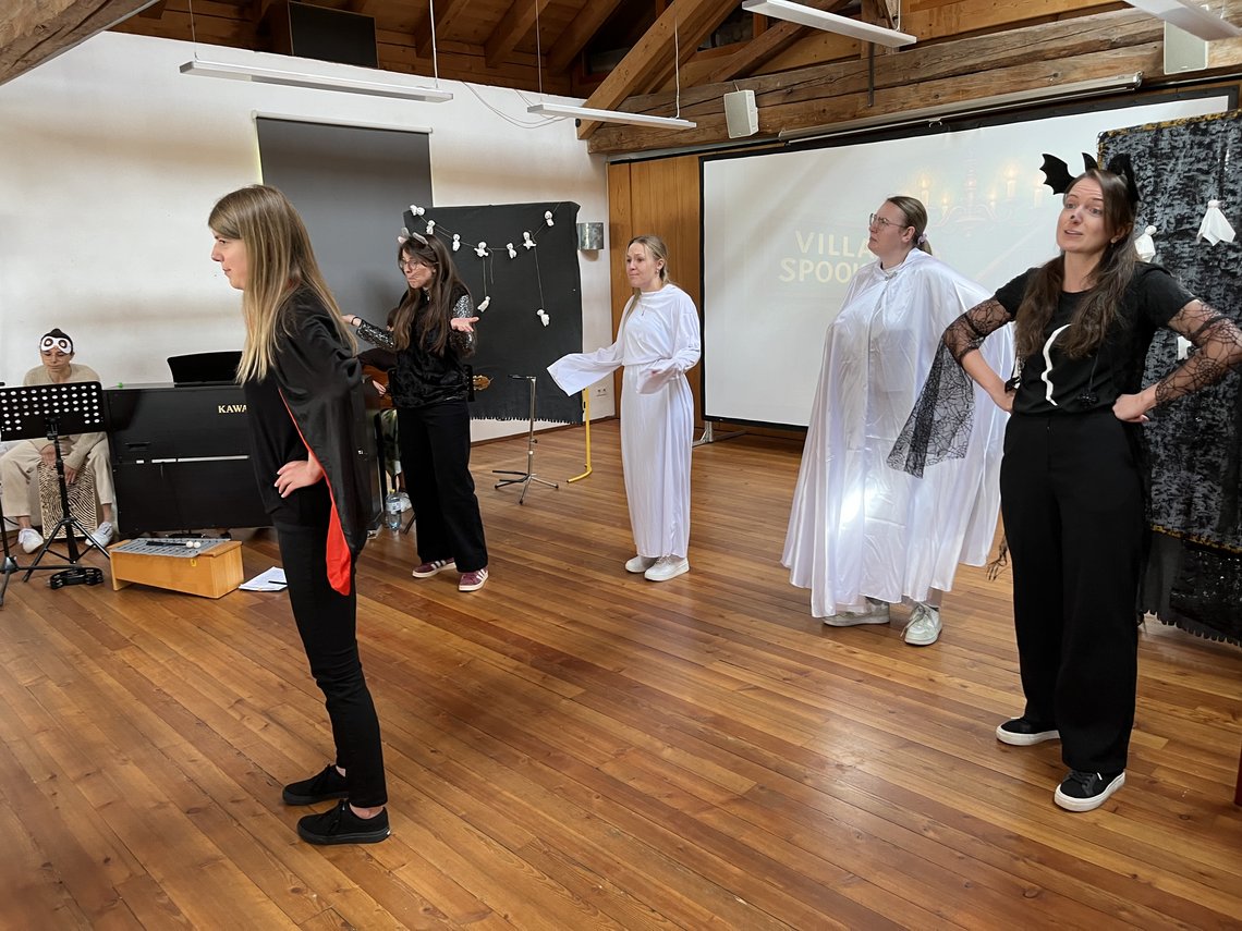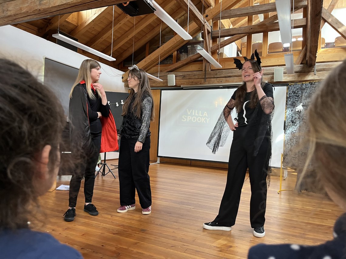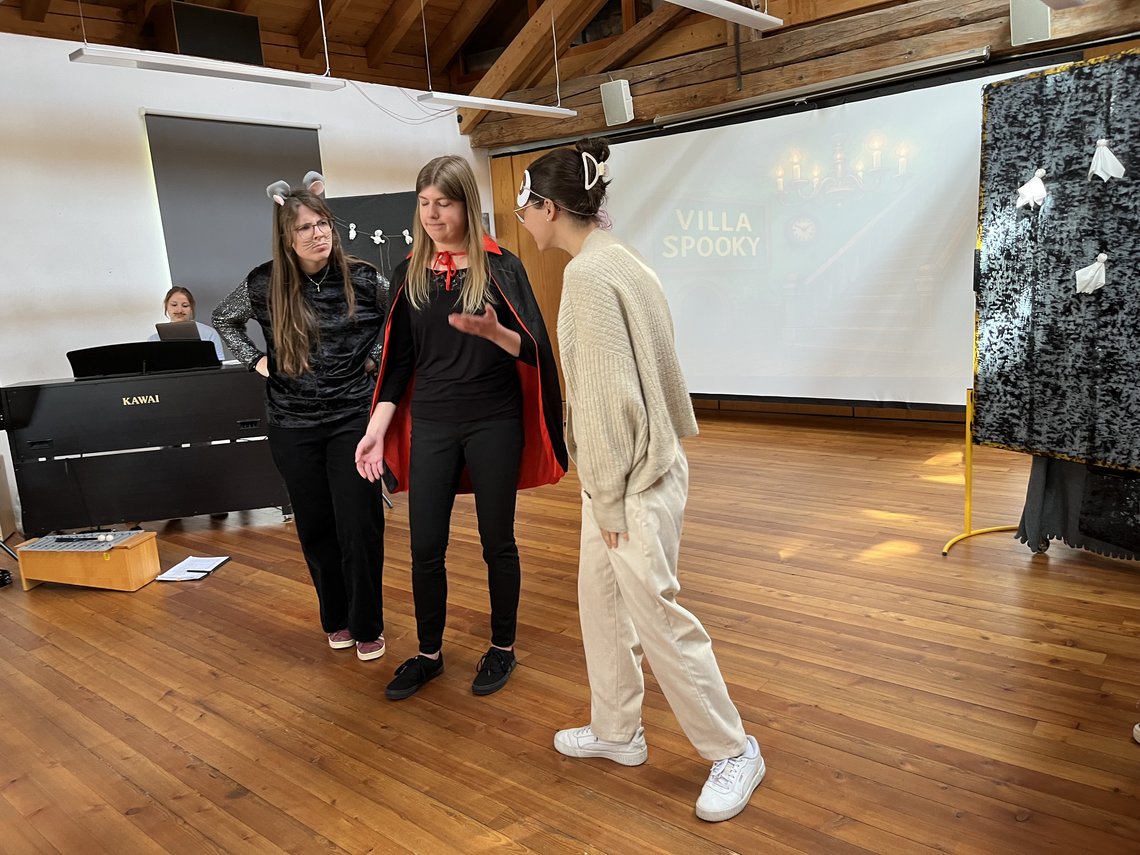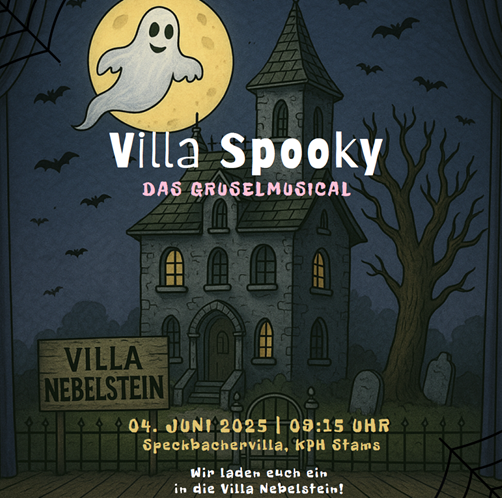 Am 4. Juni 2025 führte die kleine, aber feine Gruppe des Schwerpunktes LebensArt (8. Semester) das Musical „Villa Spooky“ vor den Schüler:innen und Lehrerinnen der Volksschule Stams in der Speckbachervilla (KPH - Standort Stams) auf.