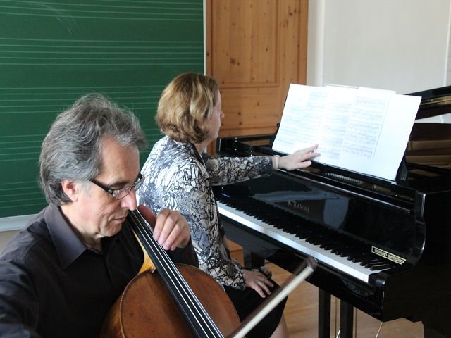 Am 2. April fand im Musiksaal der KPH ein Kammermusikkonzert statt. Auf dem Programm standen Werke von Robert Schumann, Frédérik Chopin, Claude Debussy und Johannes Brahms. Edgar GREDLER, emeritierter Solocellist des Münchner Rundfunkorchesters und Marlies NUSSBAUMER, Professorin für Klavier an der Universität Mozarteum zogen die Zuhörer mit ihrem sowohl virtuosen als auch klangsensiblen Spiel in den Bann der überwiegend romantischen Musik. Die Künstler wurden vom zahlreichen Publikum – Studierende, nicht nur der Musikerziehung, Musikinteressierte aus dem Professorenkollegium und einige Gäste - mit viel Applaus bedankt.