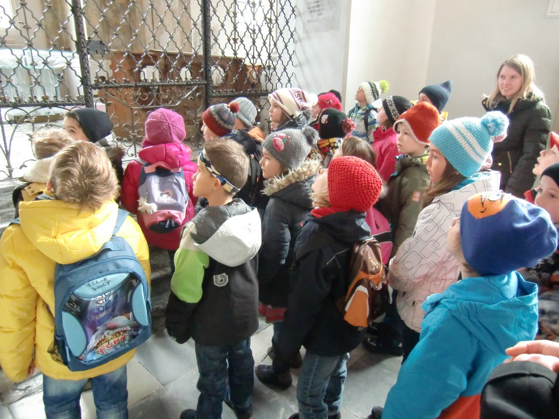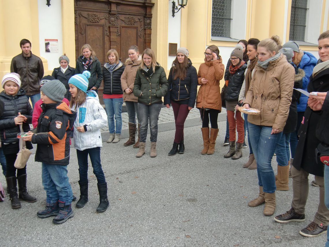 Auf die Suche nach den vier verschwundenen Rosen des berühmten Rosengitters der Stiftskirche in Stams machten sich Kinder der 2. Klasse der Volksschule Aldrans. Begleitet und tatkräftig unterstützt wurden sie dabei von ihrer Direktorin, Frau Brigitte Taferner, Mag.a Angelika Kirschner sowie den Studierenden des 3. Semesters (BA-Studiengang für das Lehramt für Volksschule). Nach einem kraftraubenden Training im Basislager der SchispringerInnen, dem Besuch der Klangwerkstatt im Bernardisaal und dem Absolvieren eines Meistermodellierkurses in Sachen Marzipanrosen gelang es den Schülerinnen und Schülern, die fehlenden Rosen durch eigene originelle Kreationen erfolgreich zu ersetzen. Als kleines Dankeschön dafür gab es für die jungen Besucherinnen und Besucher ein köstliches, kräftigendes Mittagessen – ebenfalls zubereitet von den zukünftigen Lehrerinnen.