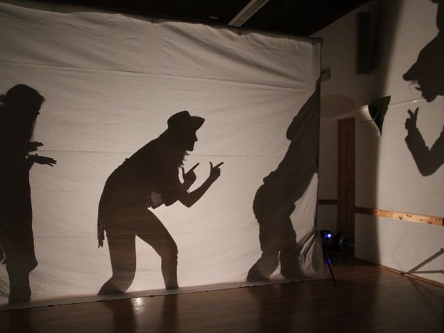 Im Theaterpädagogik-Workshop mit den beiden professionellen Puppenspielerinnen Sabine Henning und Sakia Vallazza legten die Teilnehmer/innen ihre ganze Seele in das Spiel mit dem eigenen Körperschatten: Schatten-Performance vom Feinsten - das Ergebnis.