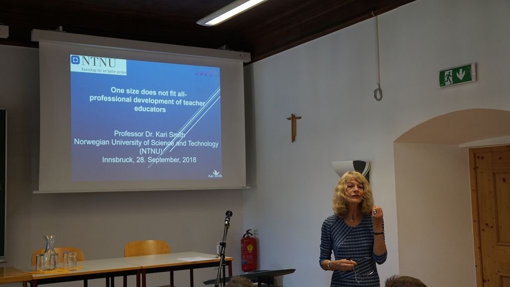 Im Rahmen einer ÖFEB-Tagung der Sektion Lehrer*innenbildung und Lehrer*innenbildungsforschung trafen sich am 28. September 2018 Ausbildner*innen aus unterschiedlichen Institutionen und Bundesländern an der KPH Edith Stein in Stams und diskutierten über das Professionsprofil von Lehrerbildner*innen. Dabei standen viele spannende Fragen im Mittelpunkt der Referate und Diskussionen. Welche Berufsgruppe verbirgt sich hinter der Bezeichnung „Lehrerbildner*innen“? Wer ist verantwortlich für eine professionelle Entwicklung von Lehramtsstudierenden und Lehrer*innen in der Fort- und Weiterbildung? Welches Profil, welche Rollen und welche Anforderungen sind damit verbunden? Wie ist die Relation von Theorie, Praxis und Forschung in der Aus-, Weiter- und Fortbildung? Welchen Belastungen sind Lehrerbildner*innen ausgesetzt?