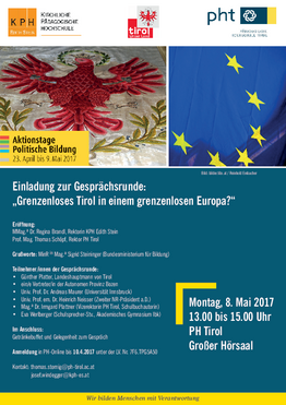 Grenzenloses Tirol in einem grenzenlosen Europa?Prominente Diskussionsrunde mit LH Günther Platter 11.05.2017