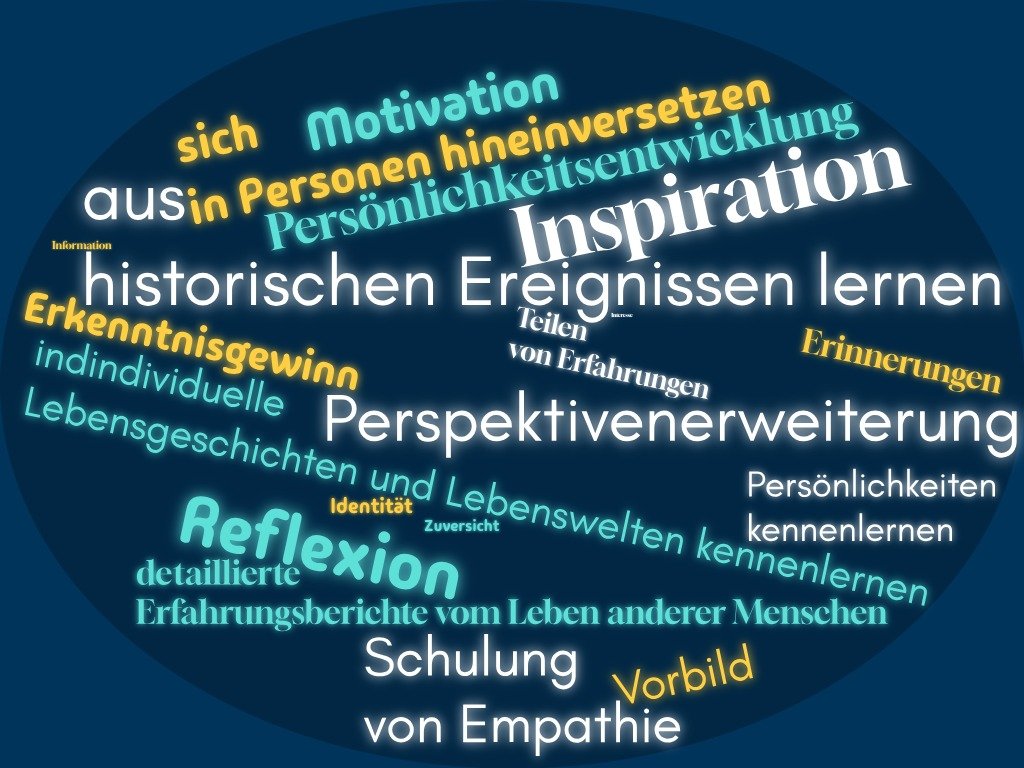 Eine andere Rückmeldung lautet: „(Auto)biografische Texte ermöglichen es uns, die Sichtweise, die Gedanken und Erlebnisse (berühmter) Personen kennenzulernen - insbesondere ihre Ansichten aus unserer Perspektive zu interpretieren und zu verstehen bzw. in unser Leben zu integrieren. Dadurch können Berührungspunkte zwischen den unterschiedlichen Lebensgeschichten wahrgenommen werden und zur eigenen Persönlichkeitsentwicklung beitragen.“