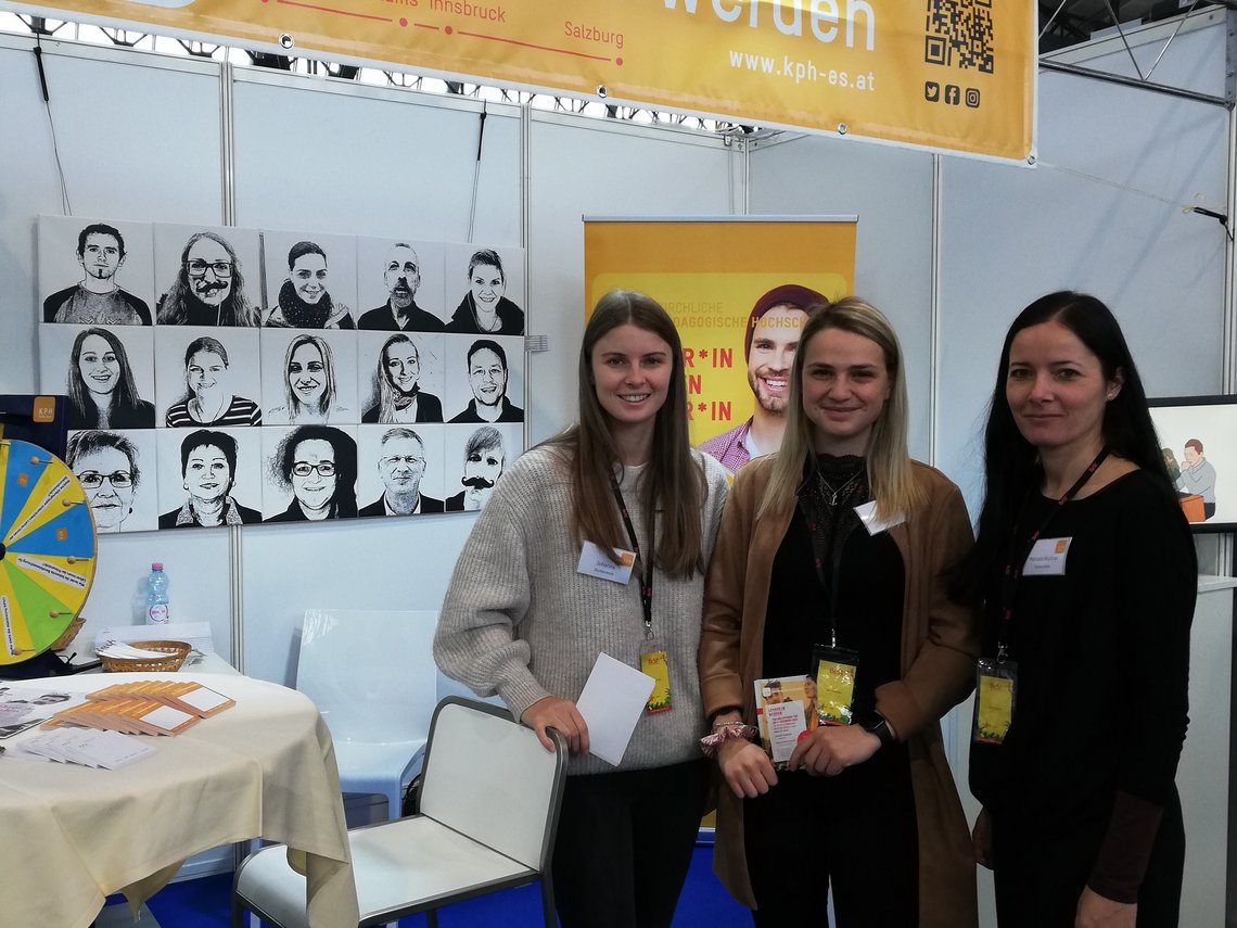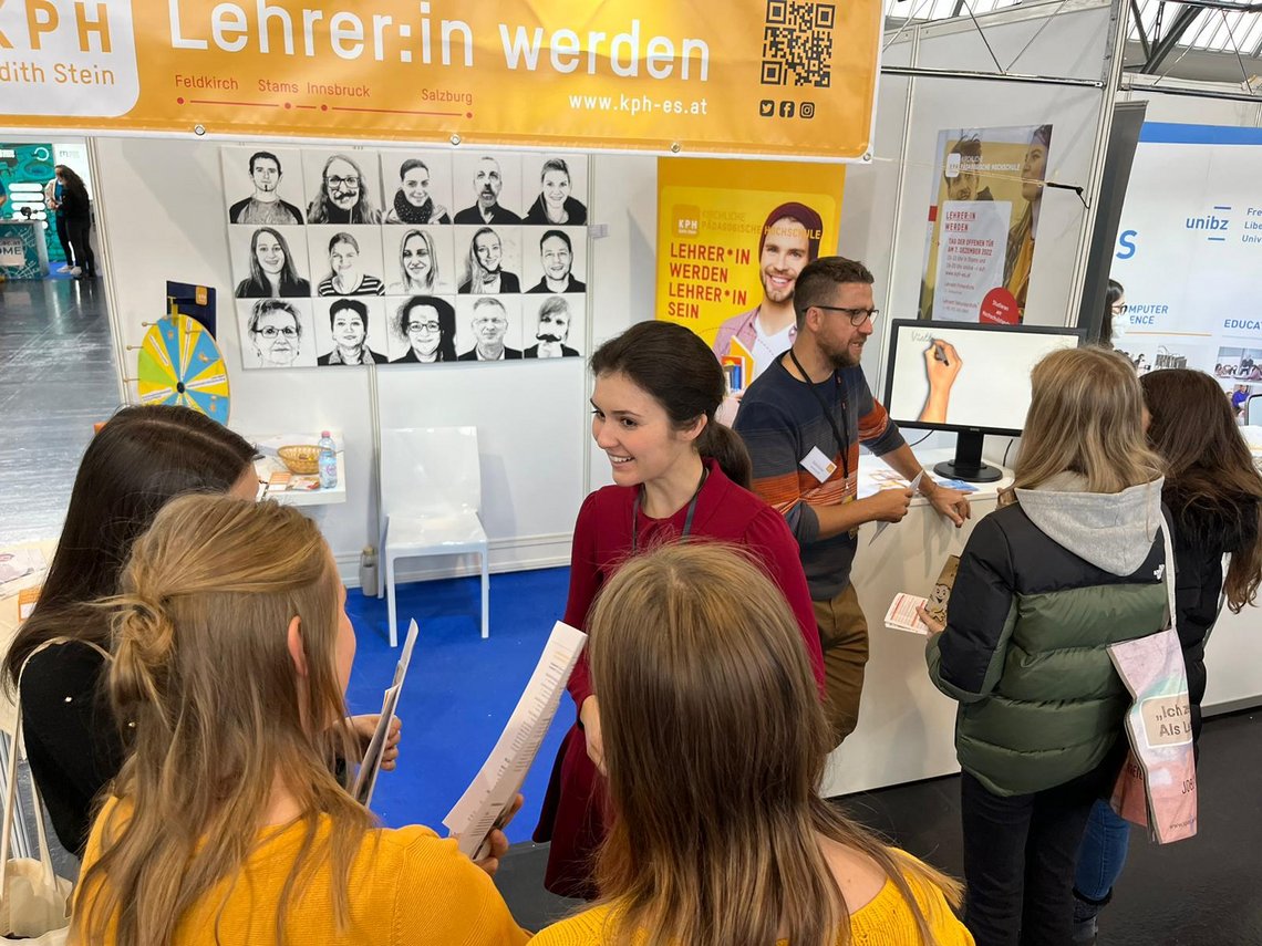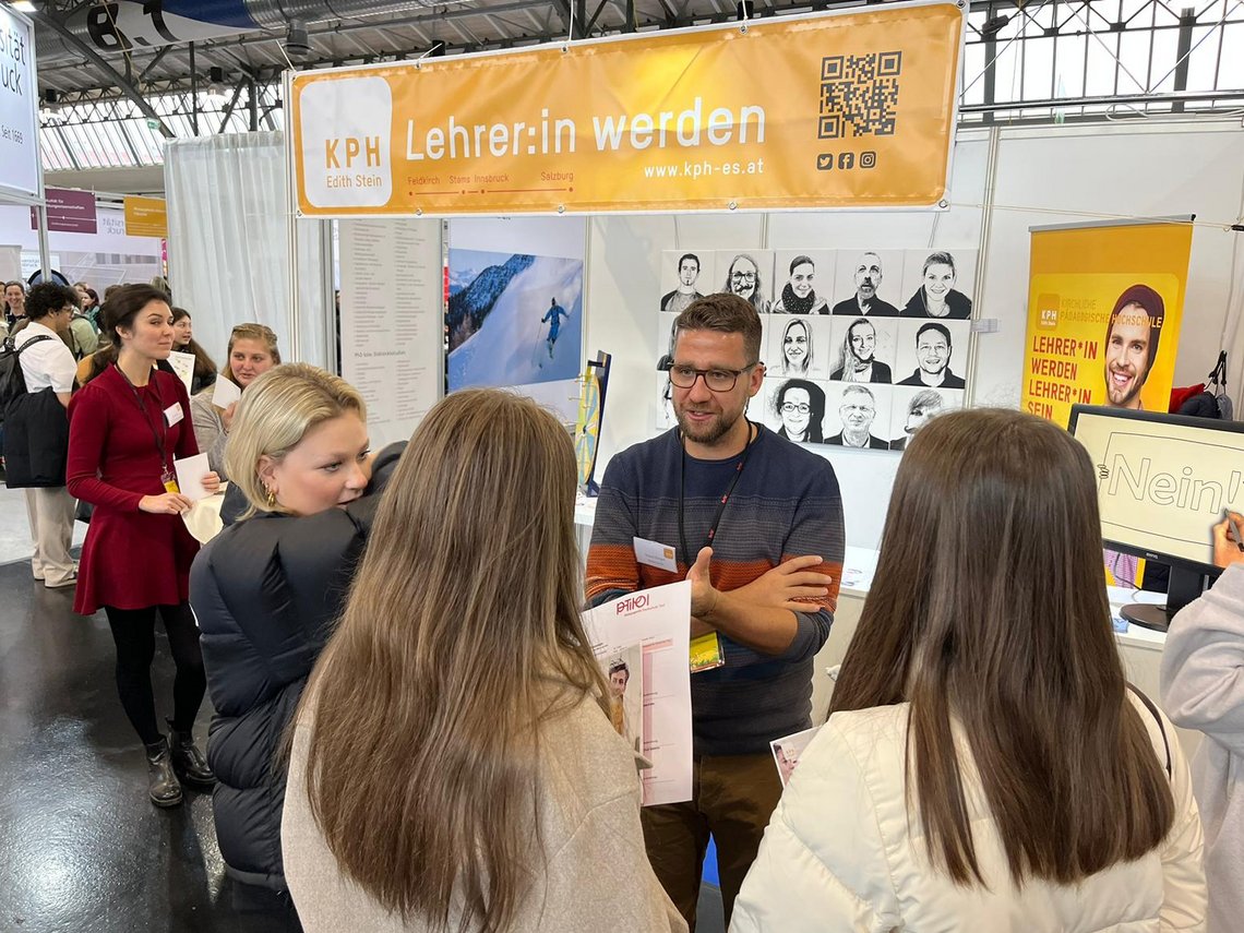 Während der dreitägigen Messe besuchten zahlreiche junge Menschen den Stand der KPH Edith Stein um sich über das Lehramtsstudium zu informieren. Unter regem Besucherandrang berichteten Studierende und Bedienstete der KPH Edith Stein über Inhalte des Studiums, Studienalltag und Berufsperspektiven.