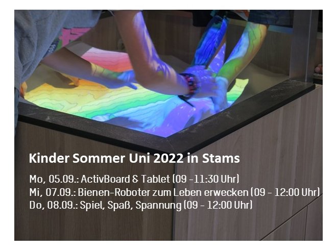Zur Online Ameldung (Kurse der KPH Edith Stein in Stams): https://www.uibk.ac.at/jungeuni/kindersommeruni/programm.html#kph
