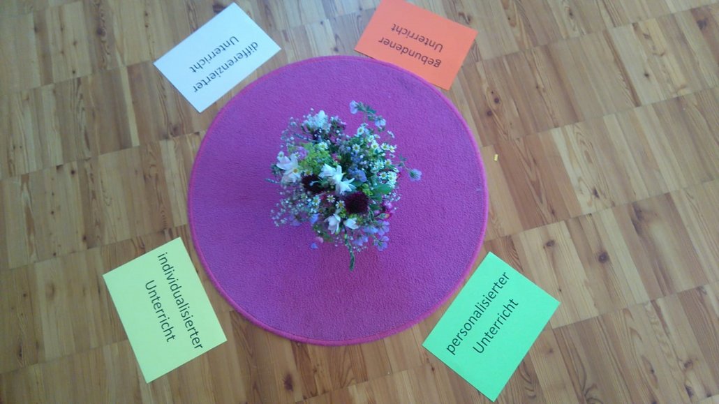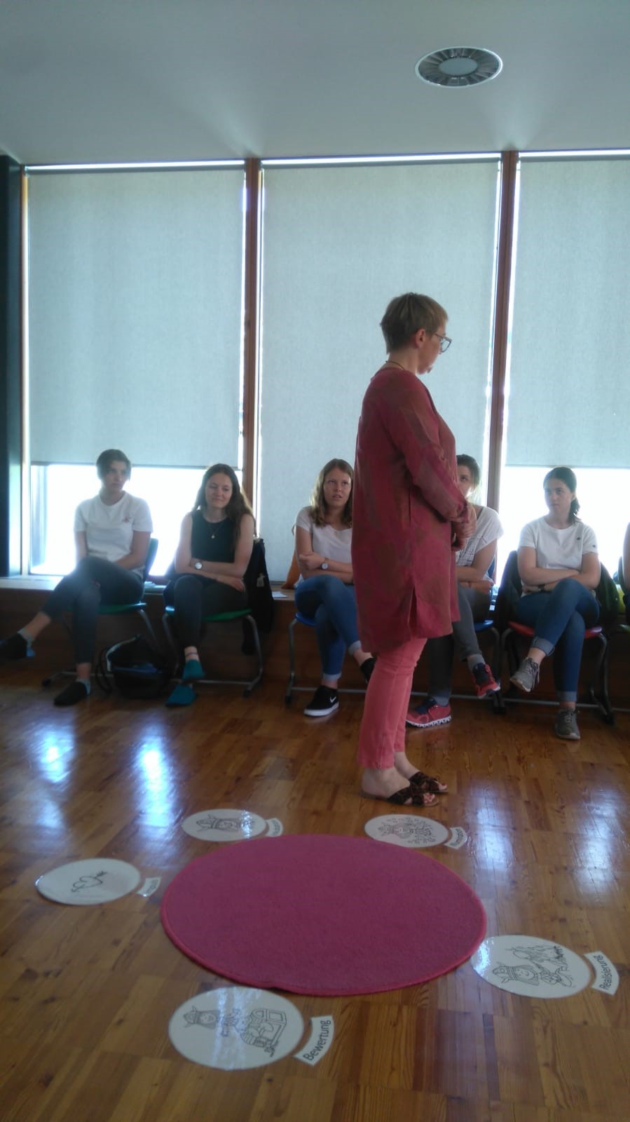 Die Denkfigur „Lernrad“ – ausgehend vom „Impuls geben“ – inspirierte Studierende, nach diesem Modell pädagogisches Handeln zu reflektieren. Dazu wurden unterschiedliche Beispiele des Schulalltags ausgewählt und besprochen. Im weiteren Verlauf wurden Orientierungspläne, Bewertungsebenen und Rahmenbedingungen innerhalb des Konzepts vorgestellt. Die inhaltliche Vertiefung gestaltete sich in der letzten Einheit durch erste Versuche des Führens eines entwicklungsorientierten Gesprächs.