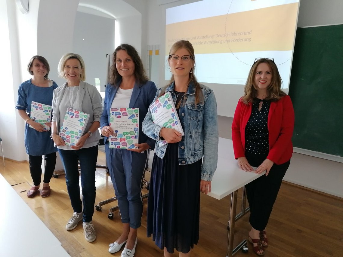 Zur Unterstützung eines projektorientiert geführten Unterrichts in der Sommerschule des Bildungsministeriums entstand im Rahmen einer Kooperation mit Professor*innen und Studierenden der Pädagogischen Hochschule Tirol und der Kirchlichen Pädagogischen Hochschule Edith Stein das grundlagentheoretische und praxisorientierte Handbuch Deutsch lehren und lernen - diversitätssensible Vermittlung und Förderung. Die Herausgeberin der Publikation Frau Dr.in Julia Festman unterteilte die zahlreichen Beiträge in Grundlagen, Förderung der Grundkompetenzen zum Unterrichtsfach Deutsch/Lesen/Schreiben und Projektideen zur Umsetzung in der Sommerschule, die ein Endprodukt als Ergebnis der zweiwöchigen Arbeitsphasen fordert. Für die KPH Edith Stein wirkten Dr.in Simone Stefan, Dr.in Barbara Hoiß, Dr.in Klaudia Zangerl, Mag.a Elisa Eisenstecken, Sarah Rinner und Anna Kopp mit.