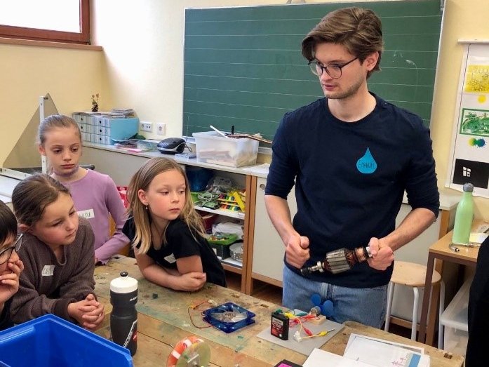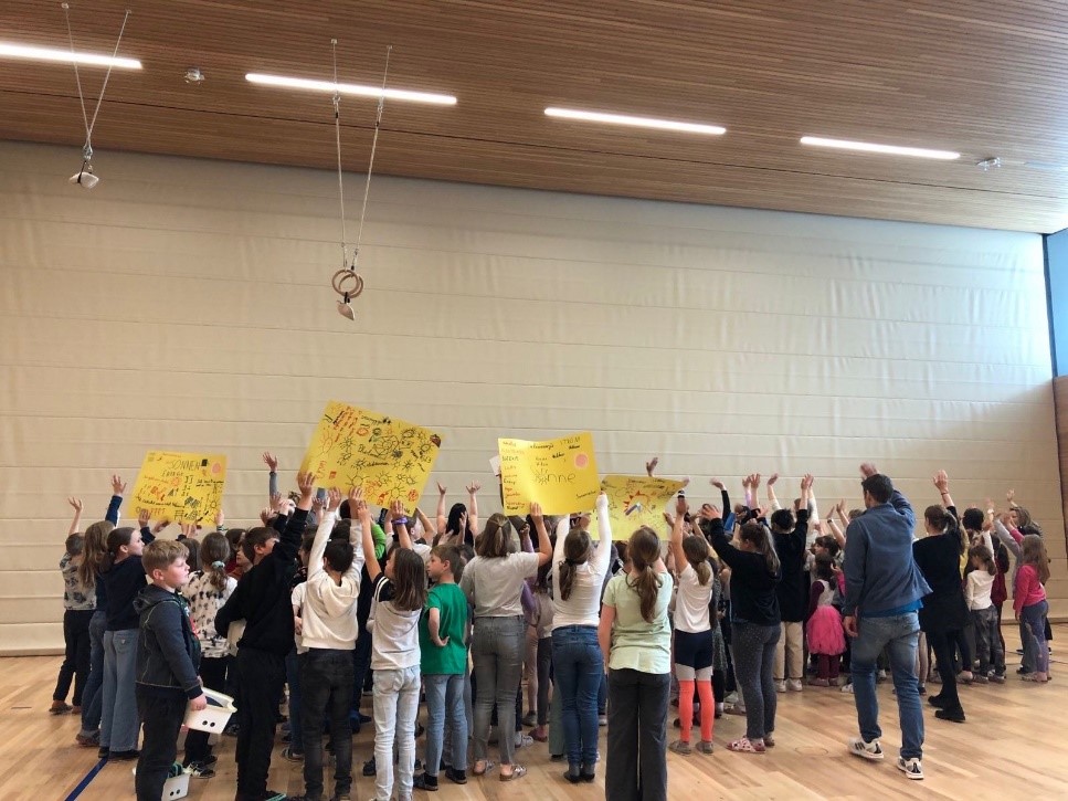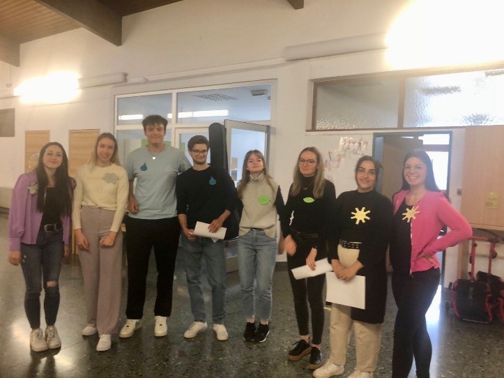 Wir arbeiteten dazu in Kleingruppen. Die Lehrenden entschieden sich für eine aktuelle Thematik: Energie – in Kombination mit den MINT-Fächern. Als Projektschule konnten wir die VS Rietz gewinnen. Wir bereiteten das Projekt für die gesamte Schule vor (6 Klassen). Die Schüler:innen wurden in altersgemischte Gruppen eingeteilt. In vier unterschiedlichen Forscherräumen konnten sie dem Thema Energie auf handlungsorientierte und spannende Weise auf die Spur gehen. Neben der Wissensvermittlung stand die Selbsttätigkeit im Vordergrund. So wurde beispielsweise im Forscherraum „Windenergie“ ein Windrad hergestellt. Im Forscherraum „Sonnenenergie“ wartete ein tolles Bewegungsspiel auf die Schüler:innen. Genauer gesagt eine Millionenshow. Ein anderer Raum widmete sich dem Thema „Nachhaltigkeit“. Zum Beispiel konnten die Kinder mit Tablets ihren eigenen ökologischen Fußabdruck berechnen. Im Forscherraum „Wasserenergie“ wurden Experimente mit einem Turbinen-, Generator- und Transformator-Modell durchgeführt. Wir stellten für alle Projektteilnehmer:innen ein Forscherheft her. Fußspuren in vier verschiedenen Farben symbolisierten unseren „Energieweg“. Den Fußspuren folgend gelangten sie zum nächsten Raum. Apfelspalten wurden in der Pause ausgeteilt, damit die Mädchen und Buben ausreichend Energie für den restlichen Vormittag haben. Ein selbstgeschriebenes Lied, welches gemeinsam im Turnsaal gesungen wurde, rundete den Vormittag ab. Die frisch gekürten Energieexpert:innen waren sehr stolz. Abschließend ist zu sagen, dass wir in der Gruppe konstruktiv zusammenarbeiteten. Besonders freuten wir uns über das positive Feedback von den Schüler:innen und Lehrpersonen. Wir werden unsere Projektwoche, insbesondere den Projekttag, in guter Erinnerung behalten. Herzlichen Dank nochmal an unsere Projektbetreuerin Frau Sölder und an die Direktorin der Volksschule Rietz, Frau Johanna Egger.