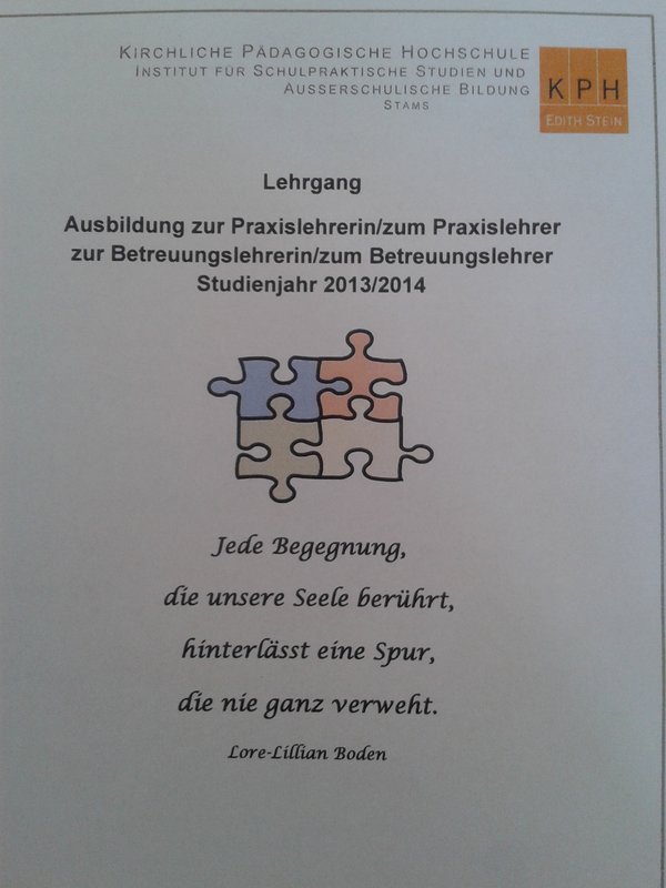 Kürzlich beendeten 50 Lehrpersonen aus VS/ASO/NMS/AHS den Lehrgang zur „Ausbildung zur Praxislehrerin/zum Praxislehrer, zur Betreuungslehrerin/zum Betreuungslehrer“ an der KPH-Edith Stein. Die Lehrpersonen empfinden die Begleitung und Betreuung der Studierenden als wertvolle Tätigkeit und als Bereicherung für das eigene Professionsverständnis. Folgende Kommentare ergeben sich nach erfolgreichem Abschluss und in der Reflexion des 2-semestrigen Lehrganges: