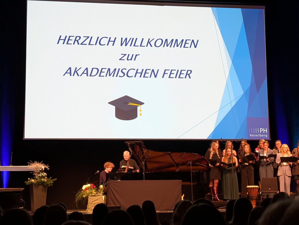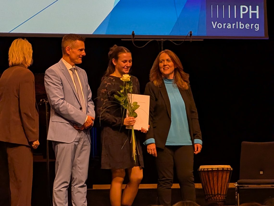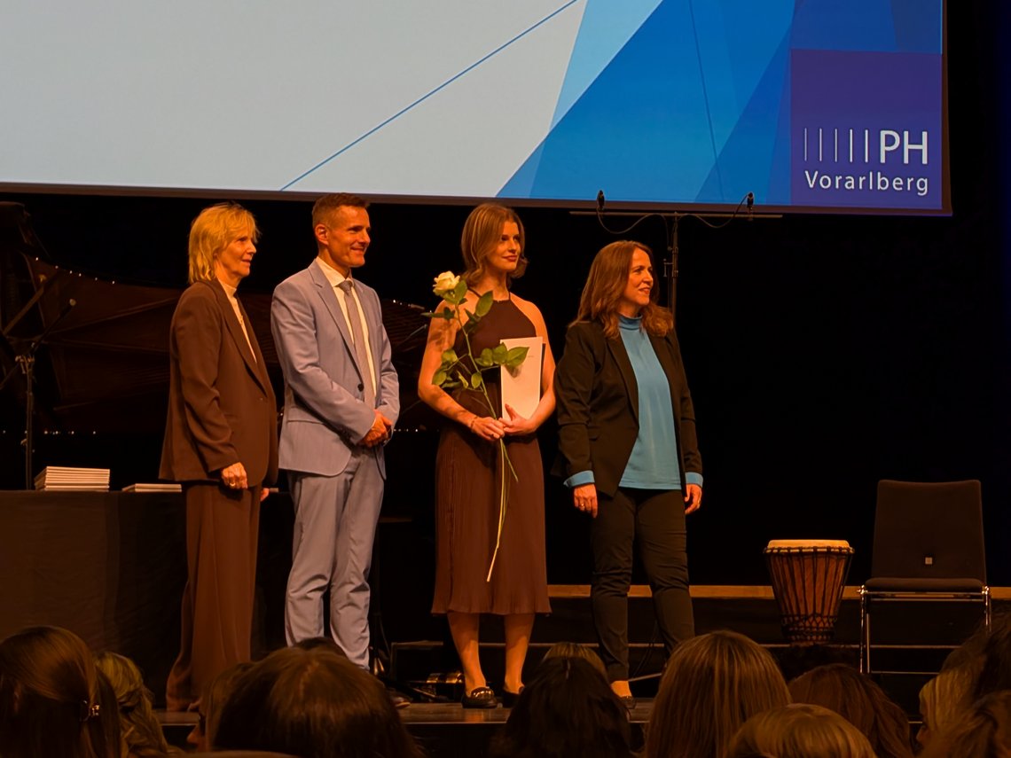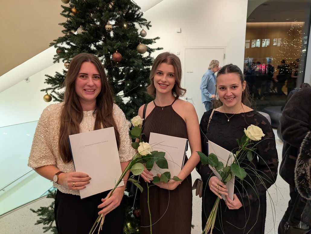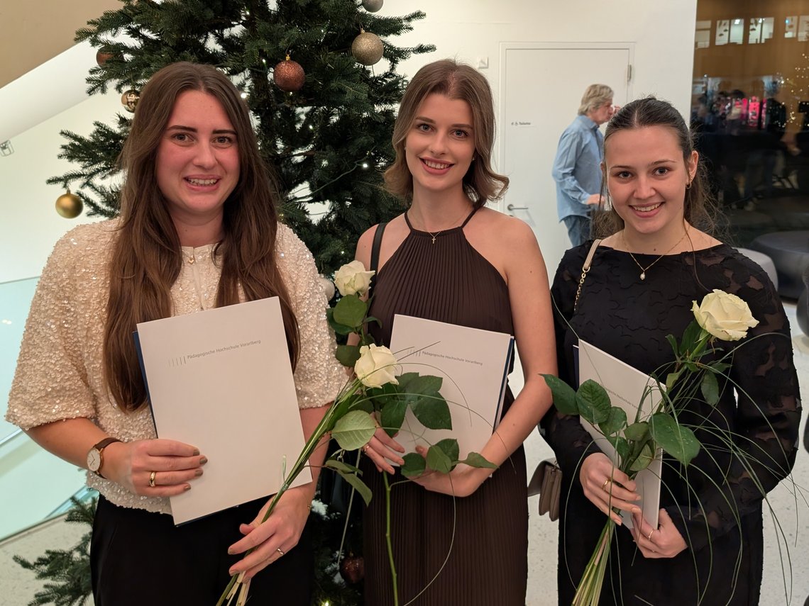 Die Früchte ihrer ausdauernden Arbeit konnten Chiara Baljak, Tibora Sternik und Annalena Wucher (v.l.n.r.) bei einer würdevollen akademischen Feier der PH Vorarlberg ernten. Die Veranstaltung fand am 3. Dezember 2025 im Montforthaus Feldkirch statt, zu der Bildungsdirektor Dr. Heiko Richter als Gast und Gratulant geladen war.