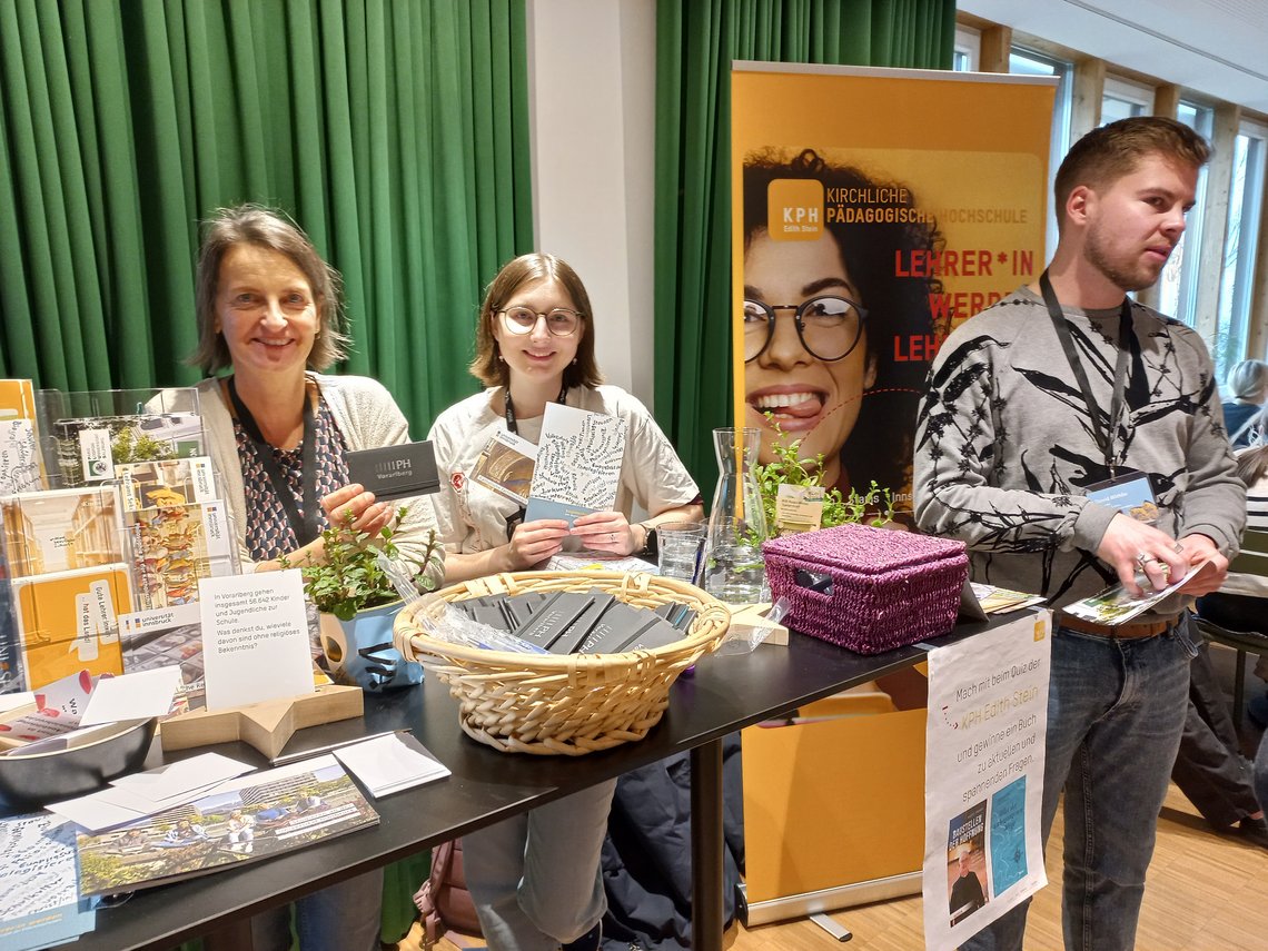 Knapp 500 Jugendliche besuchten am 6.2.2025 in St. Arbogast das Theo-Forum, die Berufs- und Informationsmesse für kirchliche und soziale Berufe. Auch die KPH ES war gemeinsam mit der PH-V und mit der Theologischen Fakultät Innsbruck vertreten, um über Studienmöglichkeiten im Bereich Theologie, Philosophie und Religionspädagogik zu informieren.