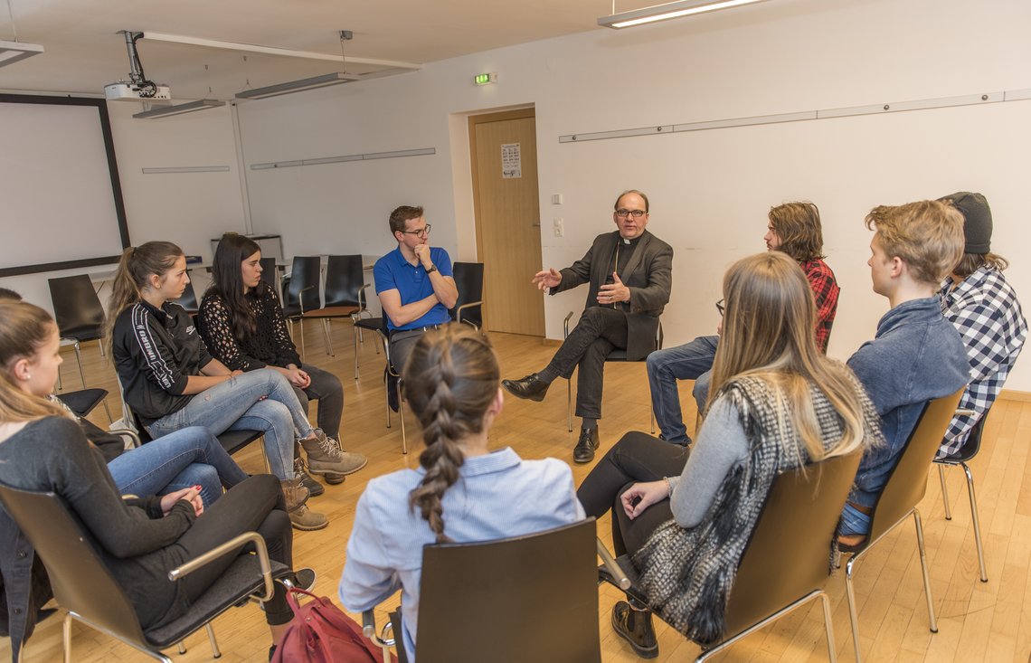 Ungefähr 350 SchülerInnen und deren Lehrpersonen besuchten den 10. Theotag im Haus der Begegnung in Innsbruck. In Workshops und an Informationsständen konnten die jungen Menschen, die vor dem Schulabschluss und vor der Berufs- und Studienwahl stehen, in das breite Spektrum an Möglichkeiten tiefer eintauchen. Die Studierenden Nicole Walch und Sarah Krug waren mit dabei und präsentierten engagiert unsere Hochschule. Die Kirchlichen Berufe kennenlernen stand im Zentrum des Theotages, aber genauso wichtig sind die Menschen, die diese Tätigkeiten ausüben, betonte Elisabeth Rathgeb, Seelsorgeamtsleiterin der Diözese Innsbruck, in ihren Eröffnungsworten. Bischof Hermann Glettler ermutigte die jungen Menschen, an sich zu glauben, zu vertrauen und nicht den negativen, verurteilenden Stimmen in sich Raum zu geben. Er begrüßte sie als Ehrengäste des Tages und bestärkte sie in seinen <link file:5147 download file>zehn Impulsen, ein selbstbewusstes und selbstreflektiertes Leben zu gehen. Das Leben sei keine Einbahnstraße, es gäbe nicht immer hundertprozentig richtige Entscheidungen gegen alle Eventualitäten, so Glettler. „Geht mit Mut, Entschlossenheit und Ausdauer euren Weg! Ihr seid nicht allein!“ motivierte der Bischof die SchülerInnen abschließend.