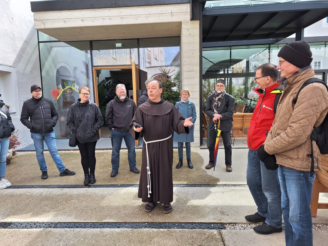 Diese Verbindung ist bei der Exkursion ins Franziskanerkloster Salzburg, die am 18. April 2024 stattfand, optimal gelungen. Guardian P. Thomas Hrastnik OFM verstand es, die Geschichte des Salzburger Franziskanerklosters, das während des Nationalsozialismus Hauptquartier der GESTAPO war, sehr interessant und anschaulich zu präsentieren und stand den Religionslehrer:innen für alle Fragen zum Leben im Franziskanerkloster und zu seiner Berufung mit großer Offenheit zur Verfügung.