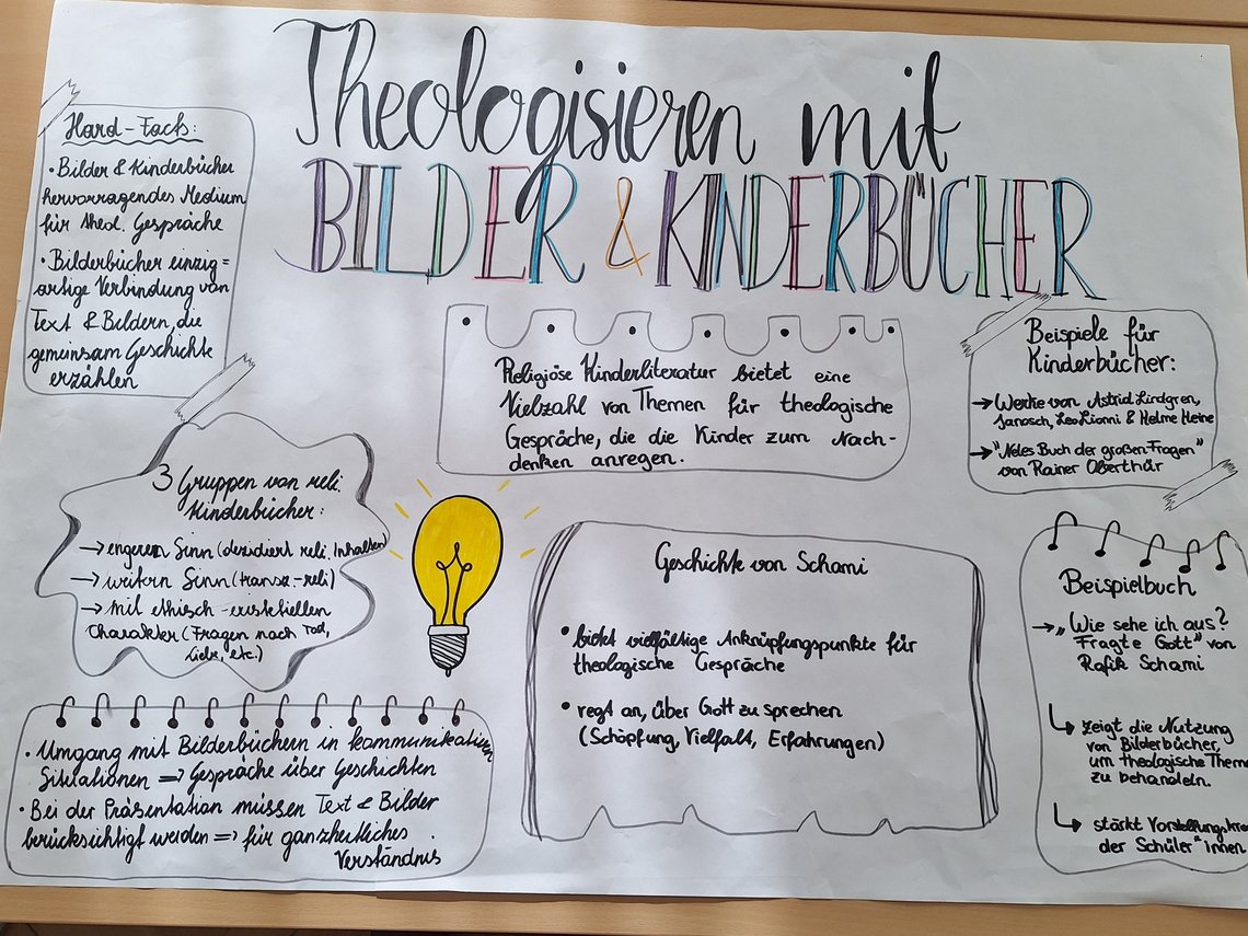 Entstanden ist eine bunte Plakatausstellung, auf der zahlreiche Methoden und Medien präsentiert werden, die das Fragenstellen sowie das philosophische bzw. theologische Denken von Kindern unterstützen und fördern.