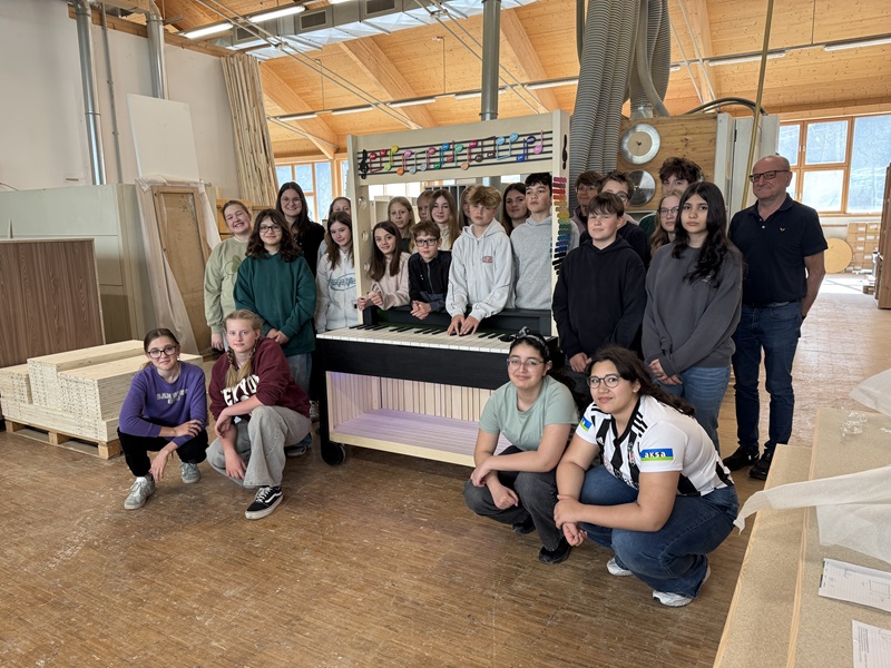Die Schüler:innen der 3. Klasse der Praxismittelschule der KPH Edith Stein haben heuer im Rahmen des Fachs "Technik und Design" an der Tischler Trophy teilgenommen. Das heurige Thema war "Möbel und Musik". Dabei entstand in Zusammenarbeit mit der Tischlerei Lenhard dann das "Musiladele".