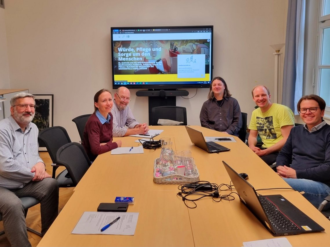 Vertreter:innen der Medienstellen aus Feldkirch, Innsbruck, Salzburg, Linz und St. Pölten diskutierten aktuelle Entwicklungen und Möglichkeiten des Einsatzes von v.a. Online-Filmen, -Dokumentationen und -Arbeitshilfen im (Religions-)Unterricht sowie im pfarrlichen Umfeld.