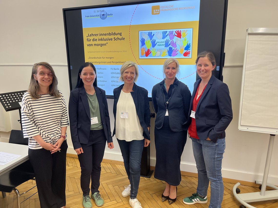 Die Freude war groß, als vier Kolleginnen der KPH Edith Stein in Kooperation mit der Freien Universität Berlin die Möglichkeit und Zusage erhielten, ein Symposium am Grazer Grundschulkongress 2024 abzuhalten. Im Rahmen von Grundschule für morgen: Entwicklungslinien und Perspektiven konnten Vorträge zu Transitionsprozesse von der Elementar – in die Primarstufe als Aufgabe der Lehrer:innenbildung, Leitungshandeln in Inklusion und Biografiearbeit als Bewusstseinsbildung für eigenes inklusives Denken und pädagogisches Handeln von Lehrpersonen und somit wichtige Beiträge zur Inklusiven Schule von morgen präsentiert werden.