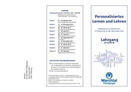 Neuer Lehrgang: Personalisiertes Lernen und LehrenPädagogische Implikationen in Anlehnung an den Marchtaler Plan 28.01.2016 Salzburg