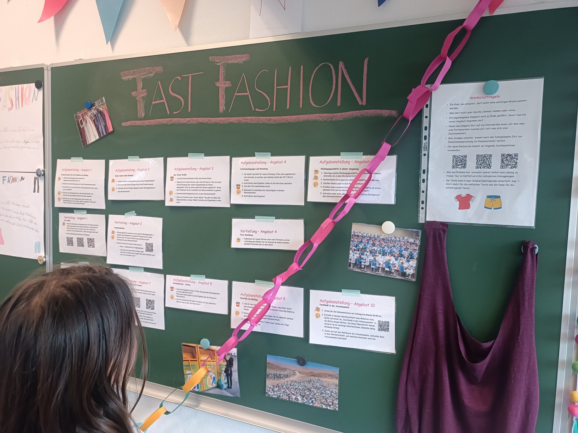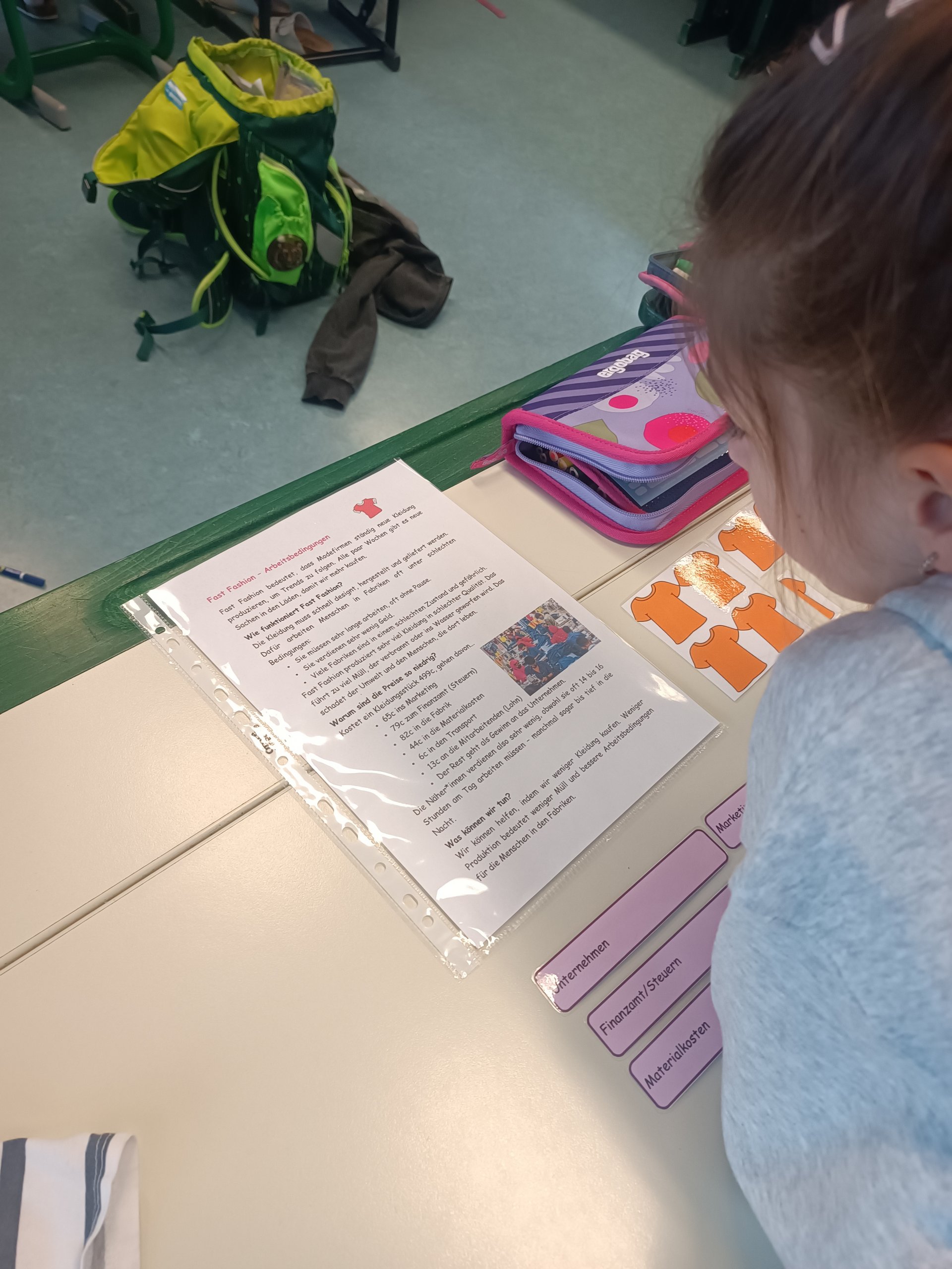 Unterrichtsmaterialien für ein erfolgreich in einer 3. Klasse erprobtes Beispiel zum Thema „Fast Fashion“ können heruntergeladen und verwendet werden. Die vielfältigen Aufgabenstellungen (und Vertiefungsangebote) sind mit relativ geringem Materialaufwand umsetzbar, kommen ohne Arbeitsblätter aus und bieten ein anregendes und herausforderndes Lernumfeld für verschiedene Lernniveaus der Schüler:innen.