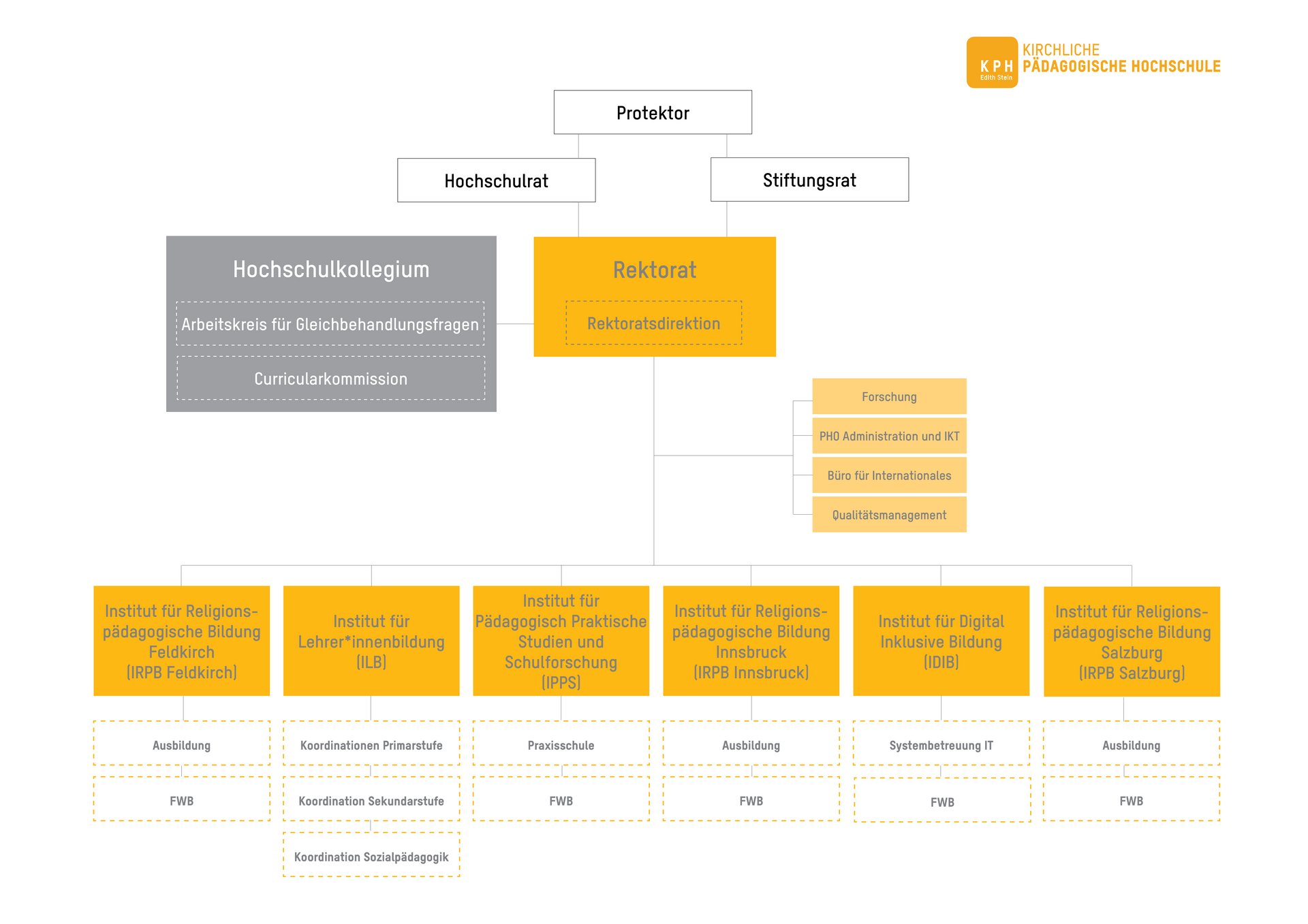 Die Organe der KPH Edith Stein sind der Hochschulrat, das Rektorat, die Rektorin bzw. der Rektor, der Stiftungsrat und das Hochschulkollegium.